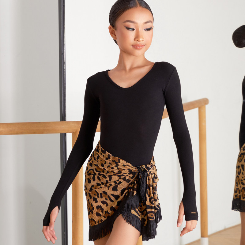 小小ZYM【OOTD】上衣连体u领拉丁舞服女童体操服长袖24074