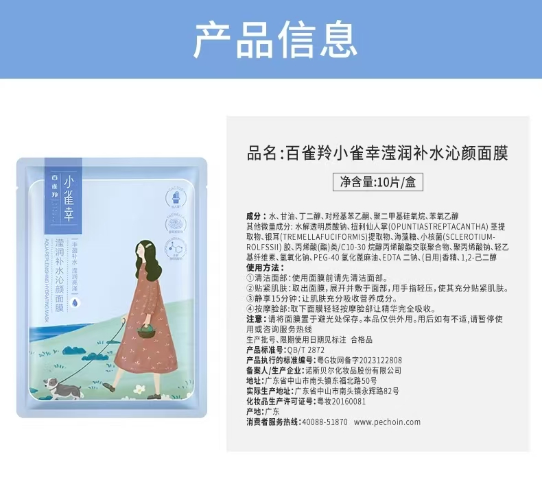 百雀羚小雀幸滢润保湿补水锁水面膜30片
