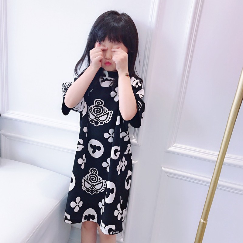 女童t恤夏中长款宽松纯棉短袖洋气2021日系亲子装母女装连衣裙潮
