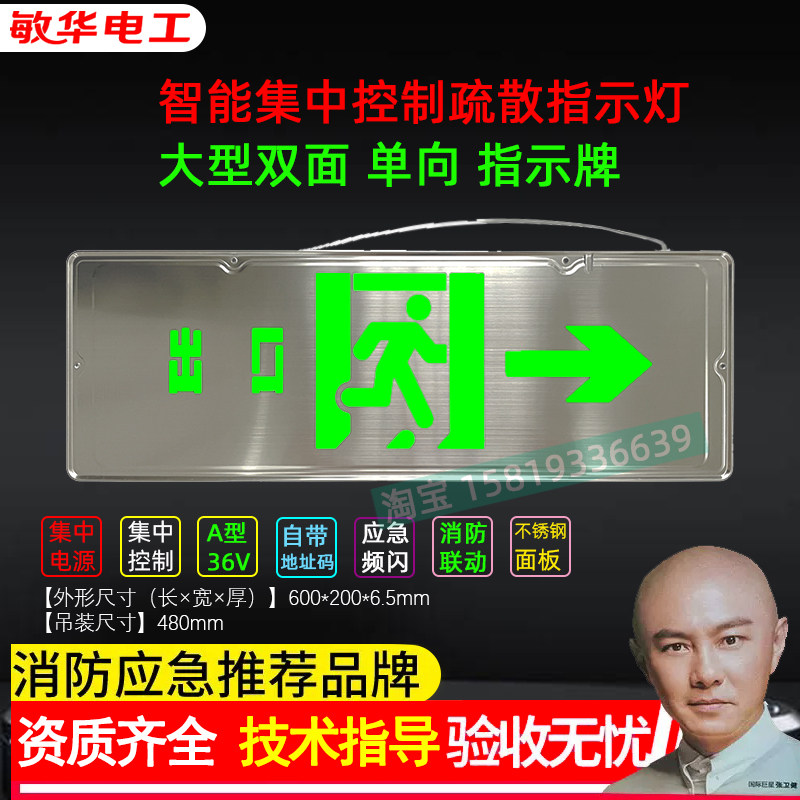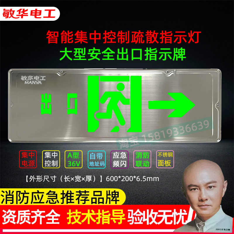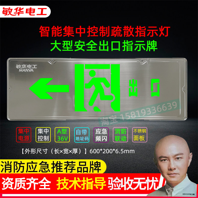 敏华大型集电集控A型36V疏散指示灯应急照明灯600*200安全出口