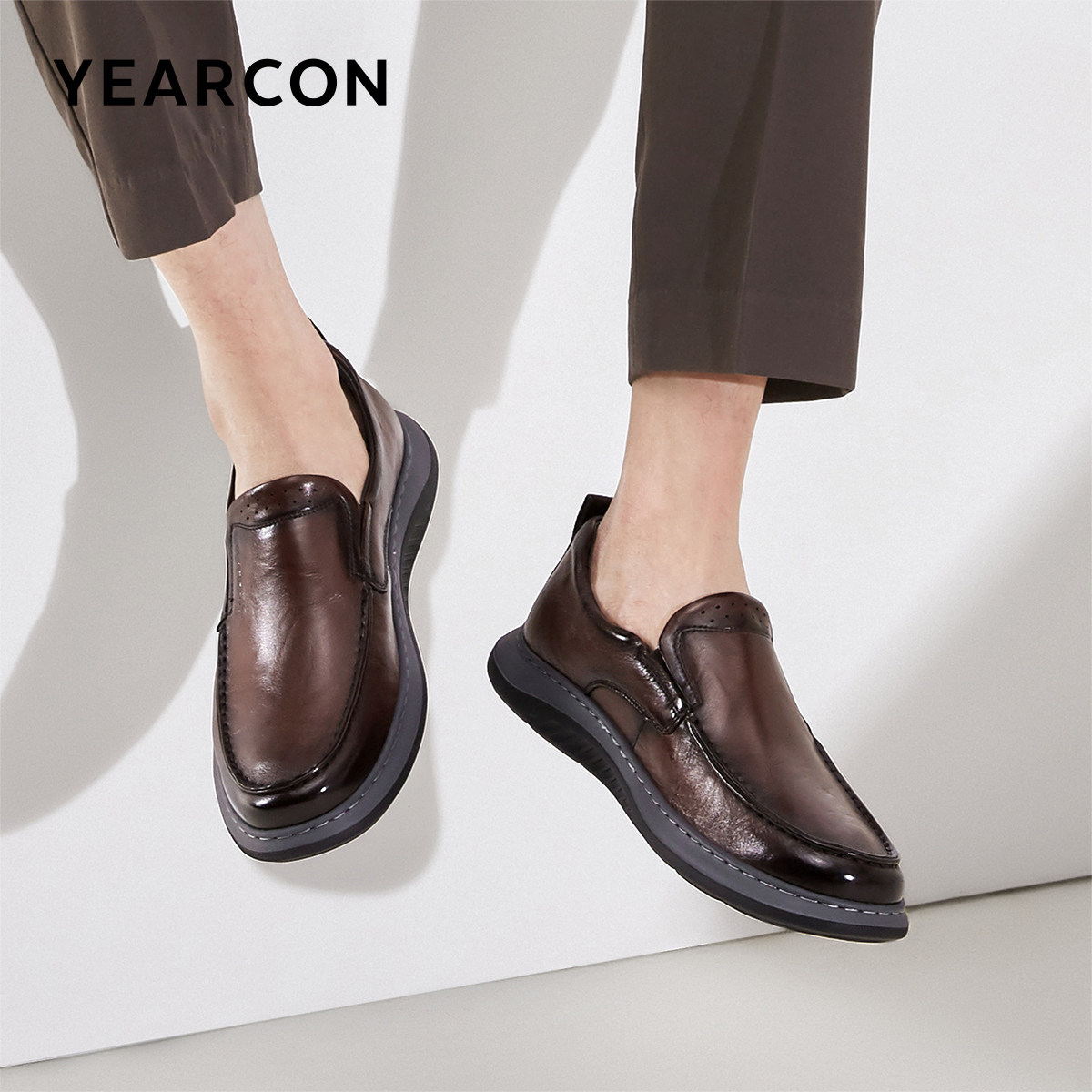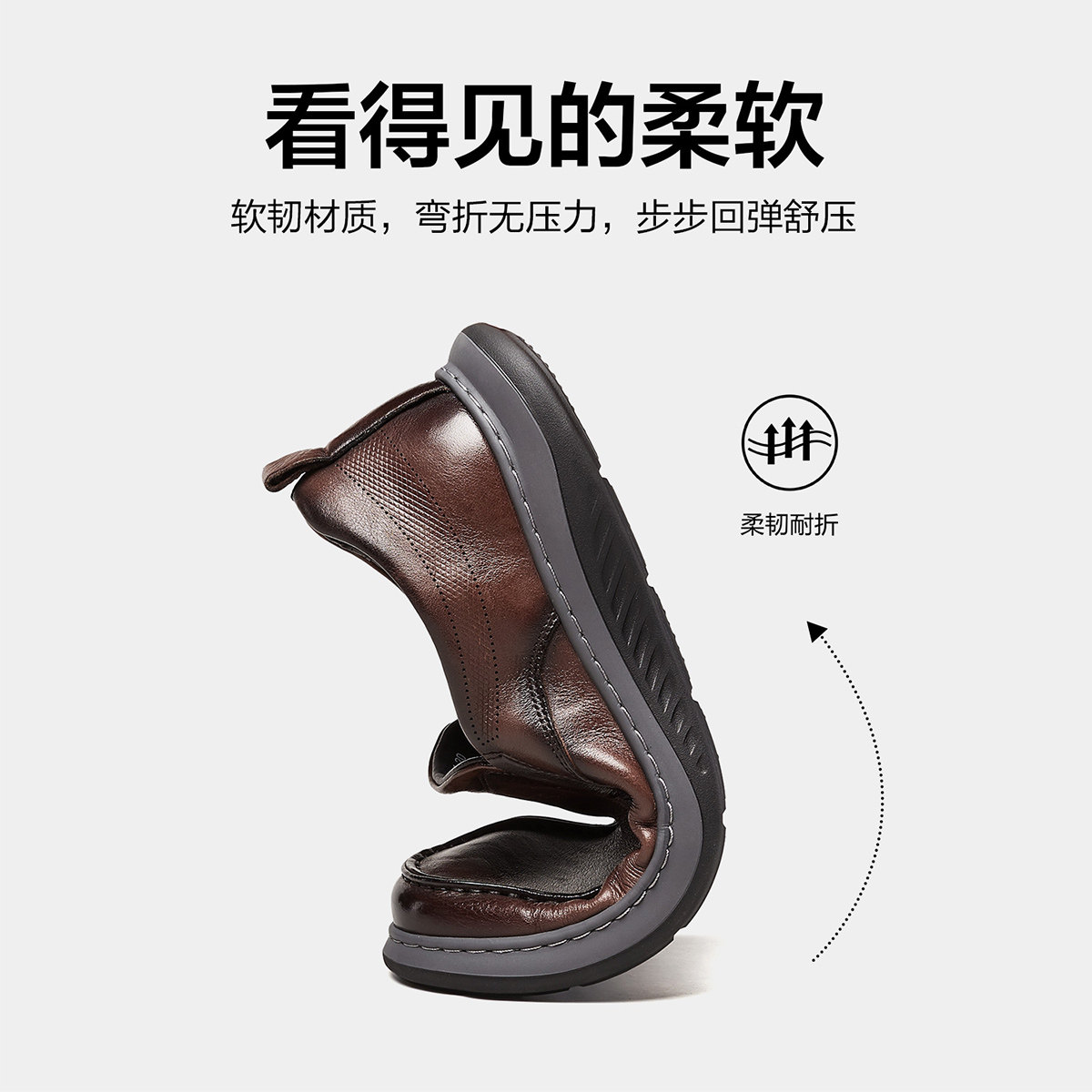 意尔康休闲鞋2026春款头层牛皮厚底套脚一脚蹬乐福鞋舒适爸爸皮鞋