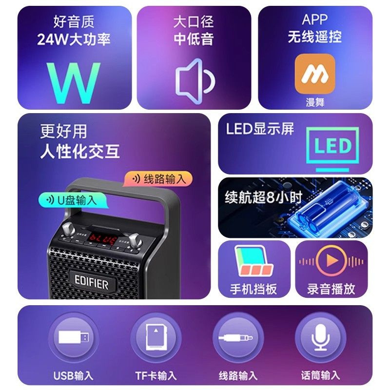 漫步者PP205户外音响广场舞k歌拉杆手提便携移动唱歌会议蓝牙音箱