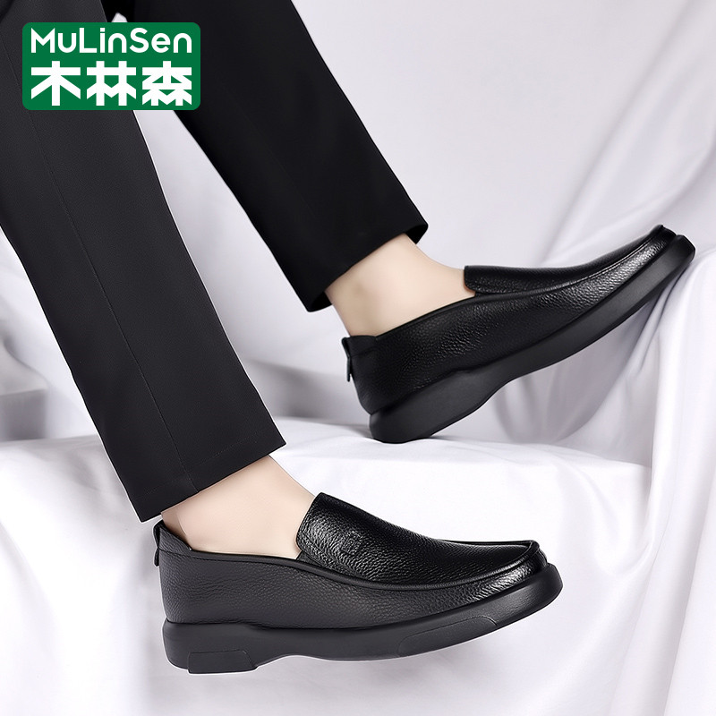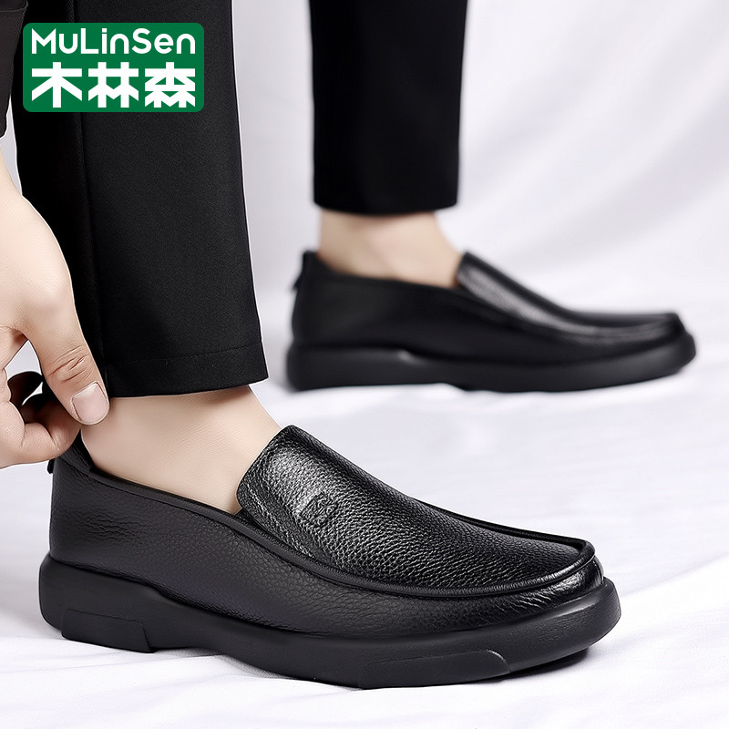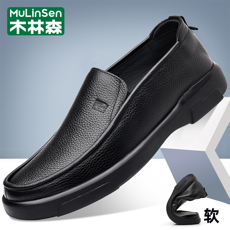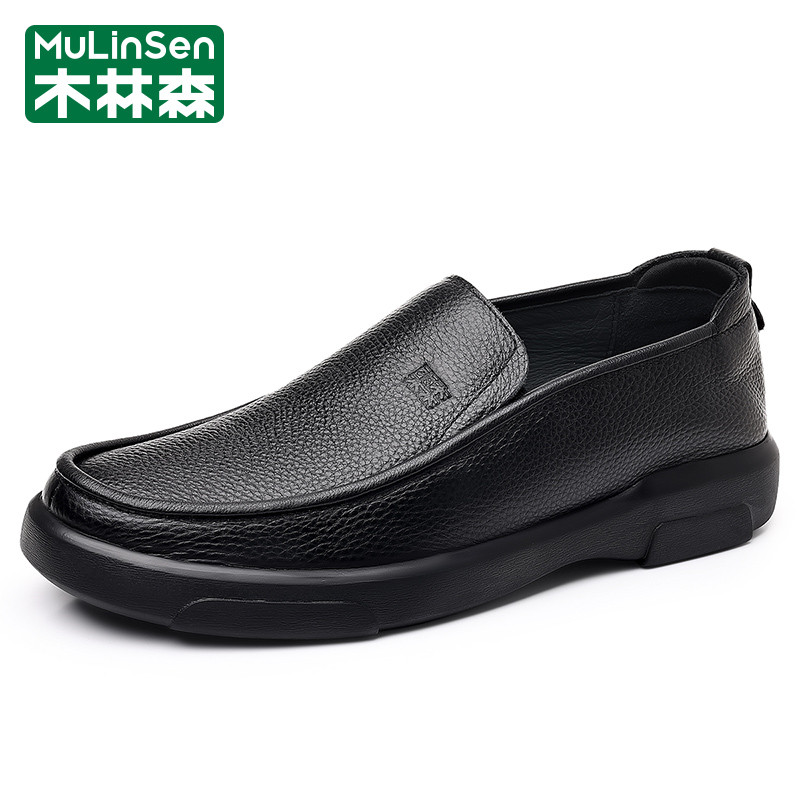 木林森男鞋冬季真皮英伦商务休闲皮鞋一脚蹬中年爸爸乐福豆豆板鞋