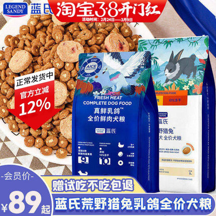 蓝氏兔肉犬粮荒野猎兔乳鸽冻干生骨肉双拼泰迪比熊全价鲜肉狗粮