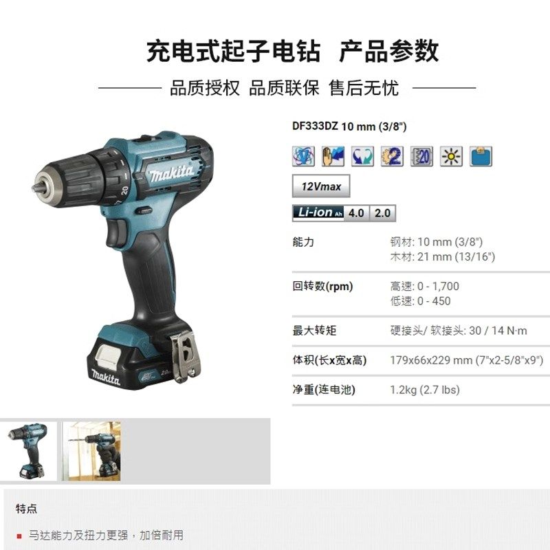 牧田充电钻12V电钻DF333家用手电钻家具安装电动螺丝刀手枪钻10MM