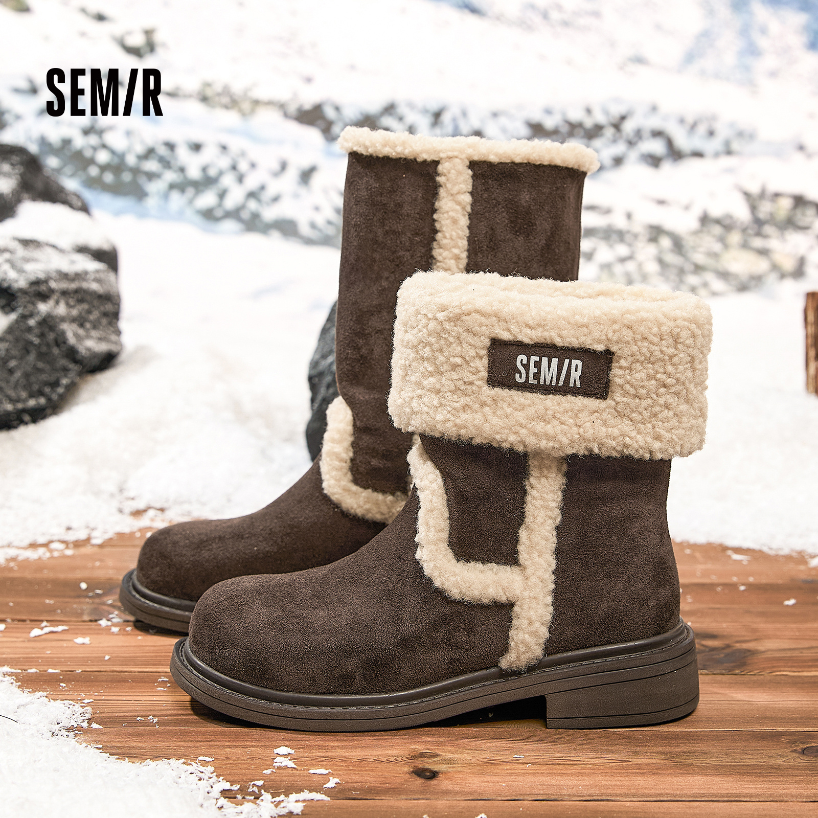 Semir旗舰店翻筒雪地靴女靴2025冬季新款加绒加厚保暖显瘦棉鞋