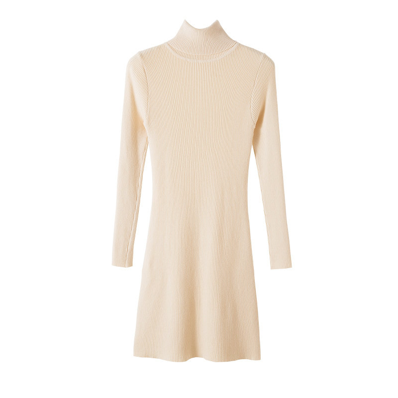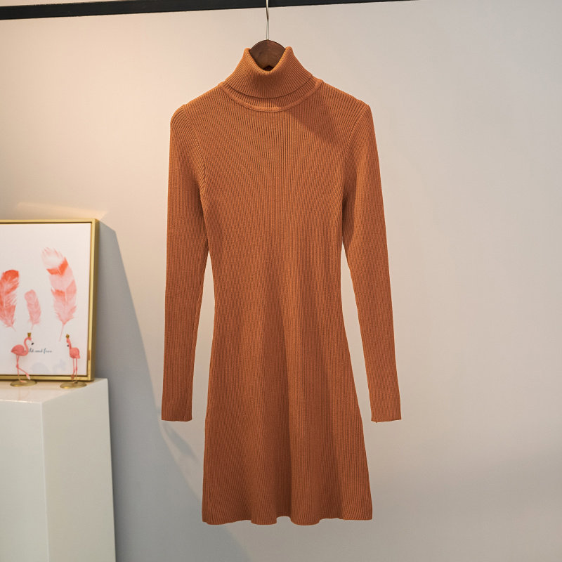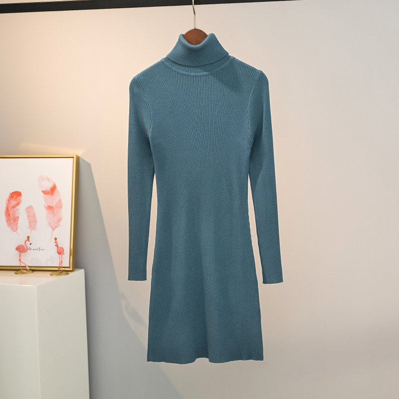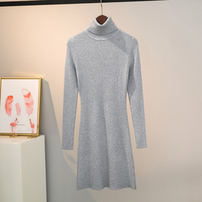 秋冬季新款高领套头毛衣裙女中长款修身长袖针织衫打底包臀连衣裙