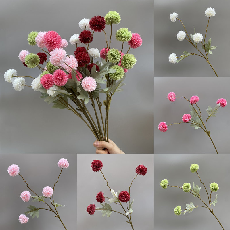 婚礼仿真花材5头乒乓球绢花婚礼堂吊顶装饰假花背景花艺插花布置