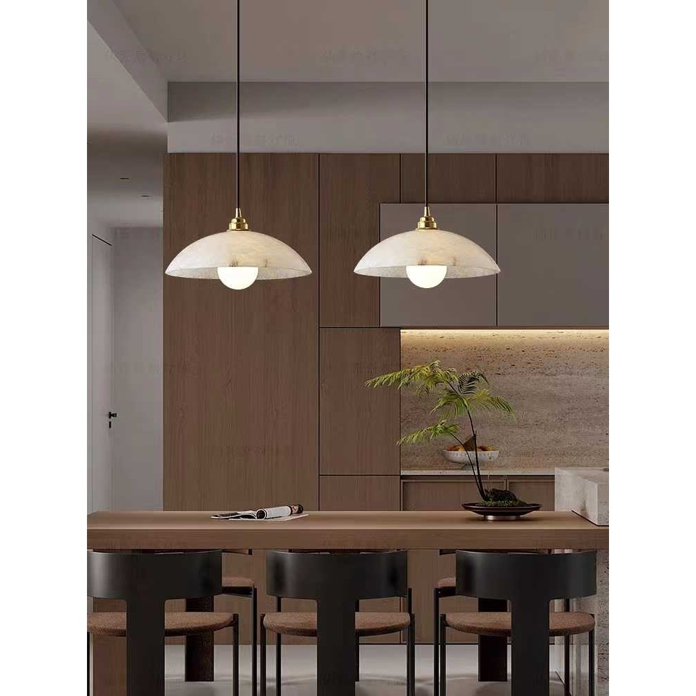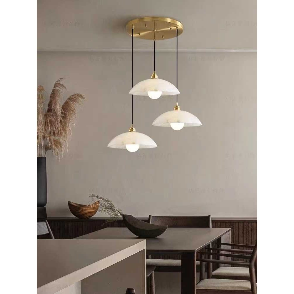 现代简约北欧云石餐厅半圆吊灯轻奢新中式茶室单头三头吧台餐厅灯