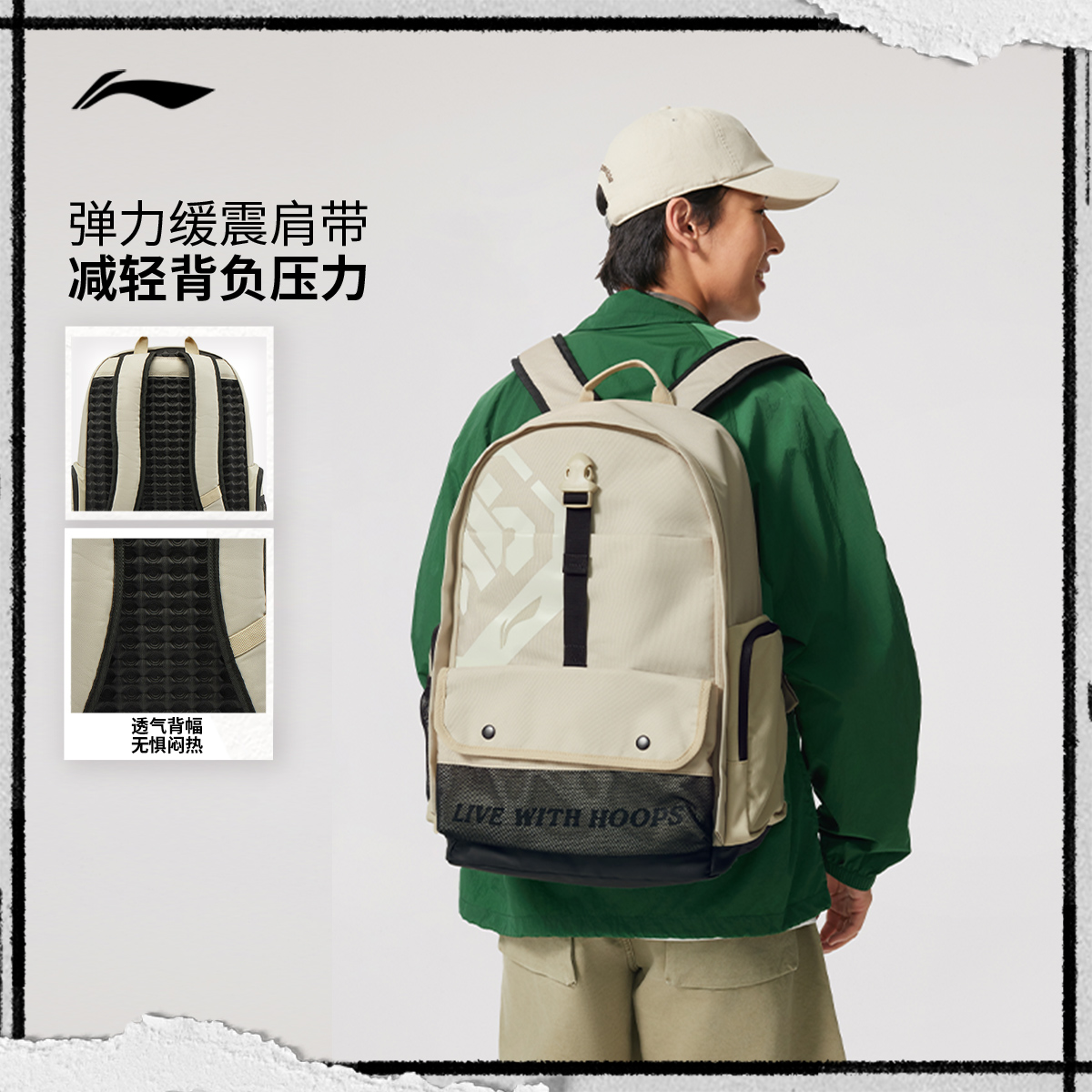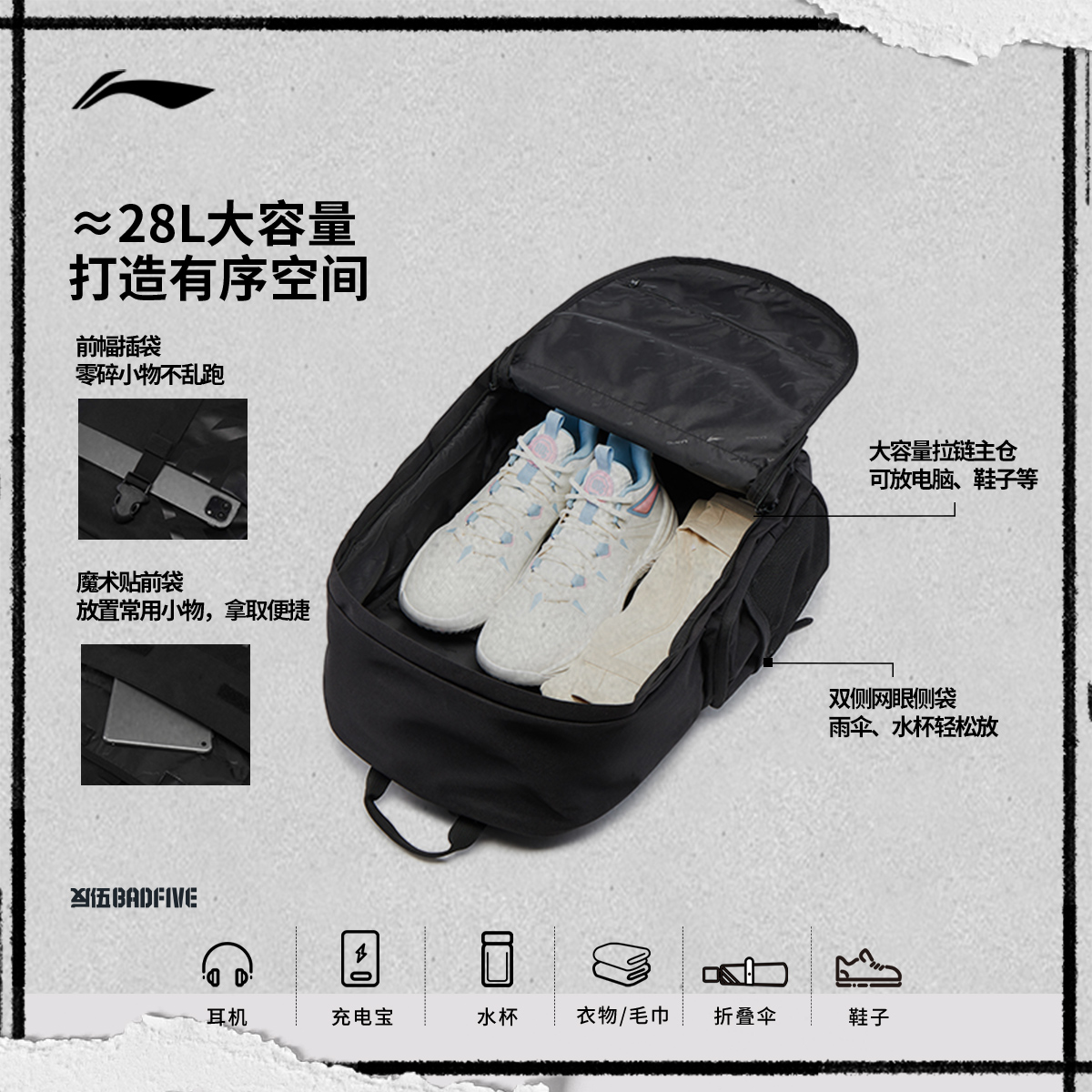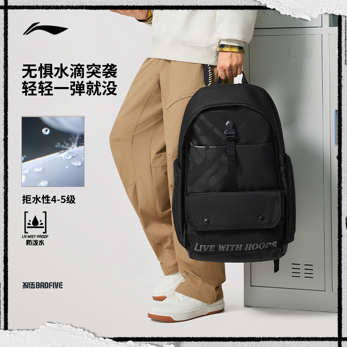 李宁反伍双肩包男女2025新款防泼水旅行背包高颜值学生书包运动包