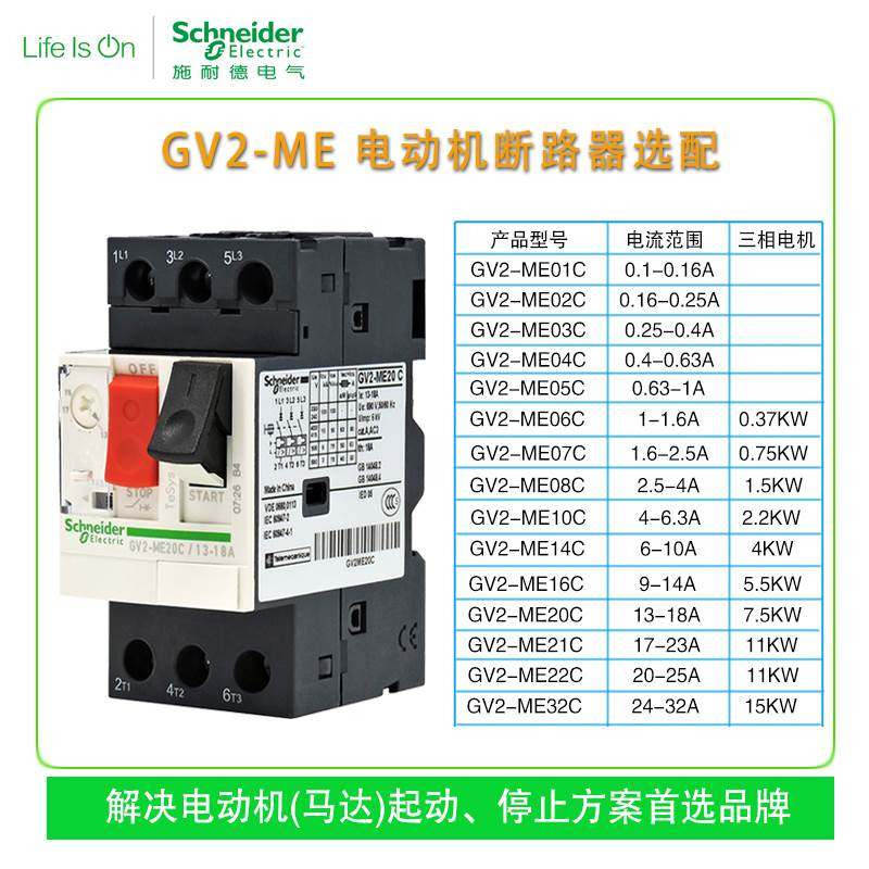 施耐德电动机断路器GV2ME16C马达断路器保护20C14C16C22C开关