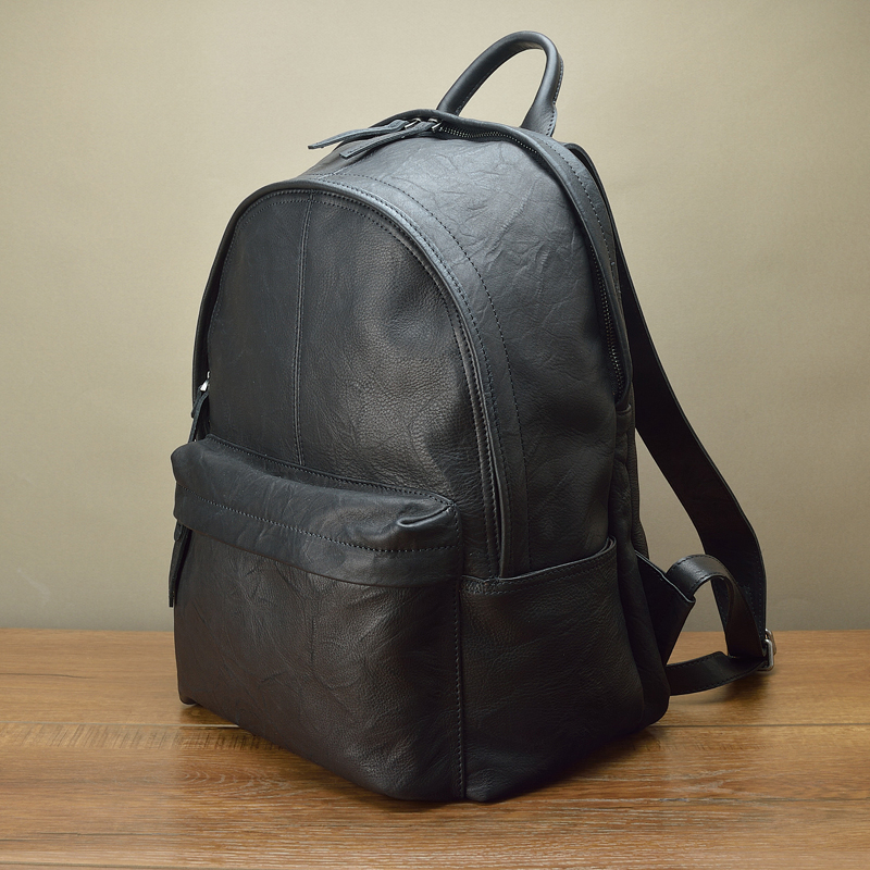 进口胎牛皮男双肩包 头层真牛皮欧美街头复古潮 学院旅行电脑背包