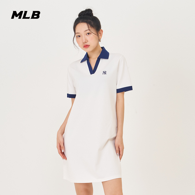 MLB官方 女款POLO领短袖连衣裙撞色休闲直筒裙OPB03