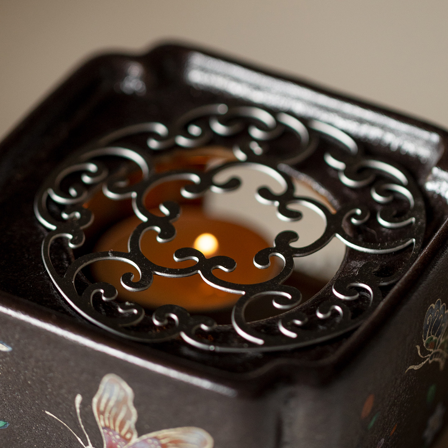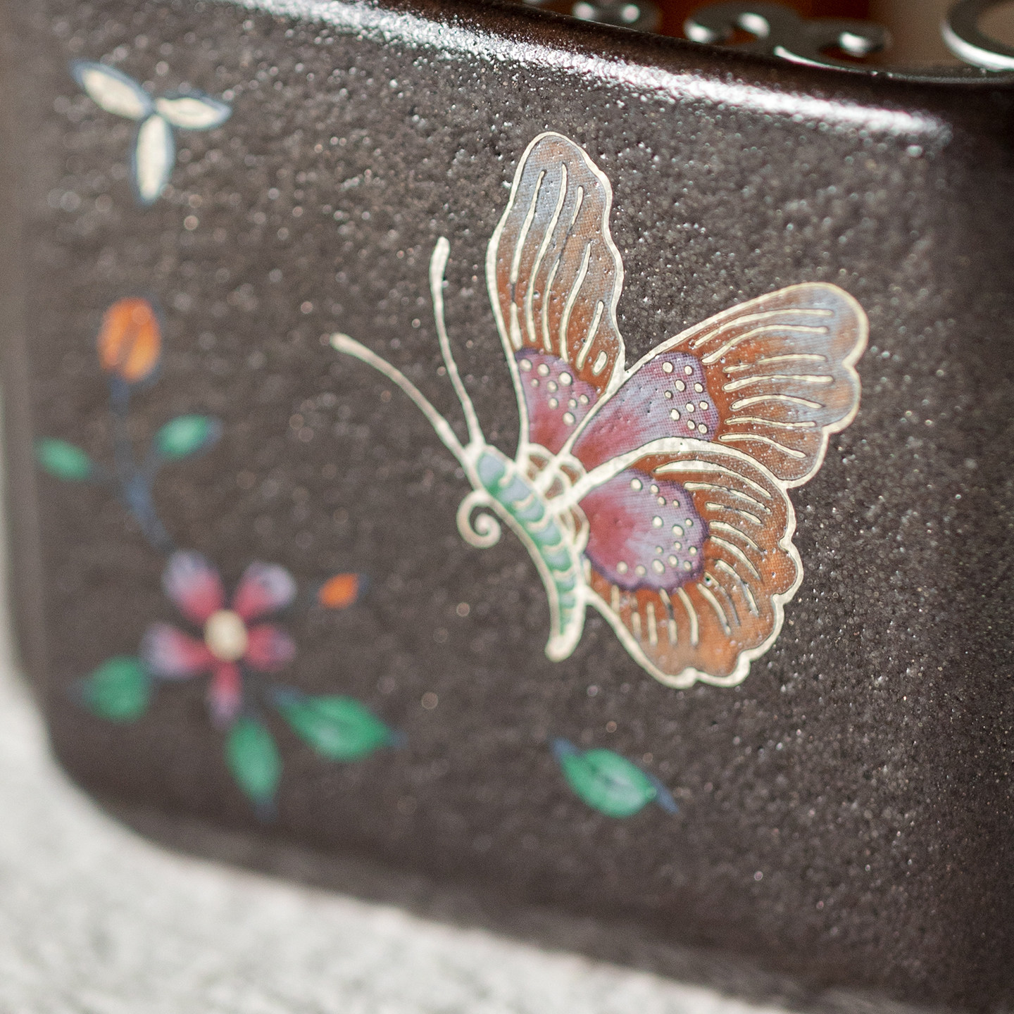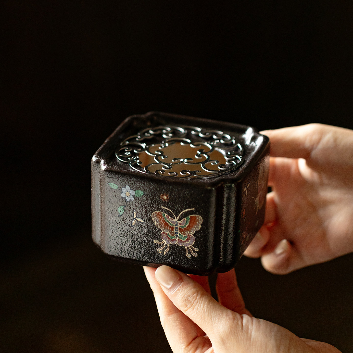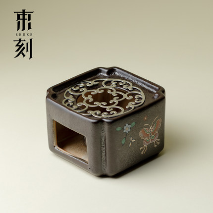 束刻日式黑志野烧粗陶温茶炉底座粉彩蝴蝶酒精炉围炉煮茶煮茶炉