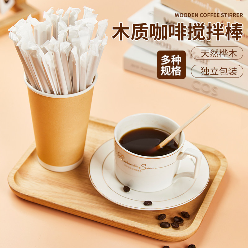 木制 咖啡搅拌棒一次性独立包装咖啡棒搅拌棍长柄热饮茶牛奶木棒