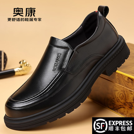 奥康春季新款皮鞋男款真皮商务正装中年休闲鞋软底一脚蹬爸爸鞋子