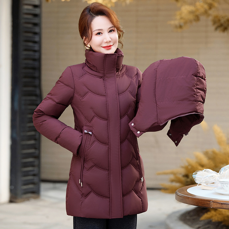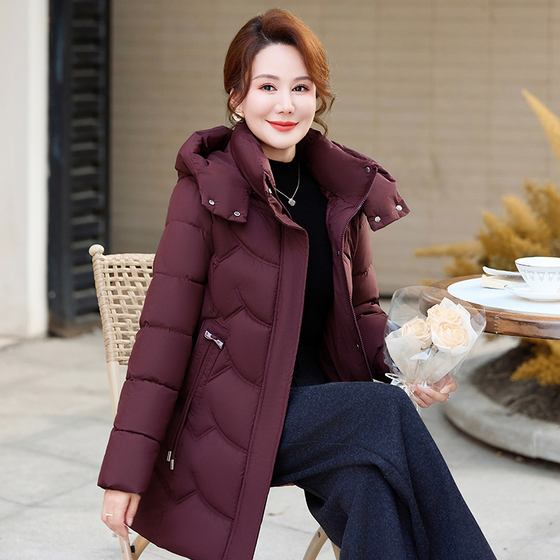 中年妈妈冬季羽绒棉服女2025新款加厚棉衣洋气中长款连帽棉袄外套