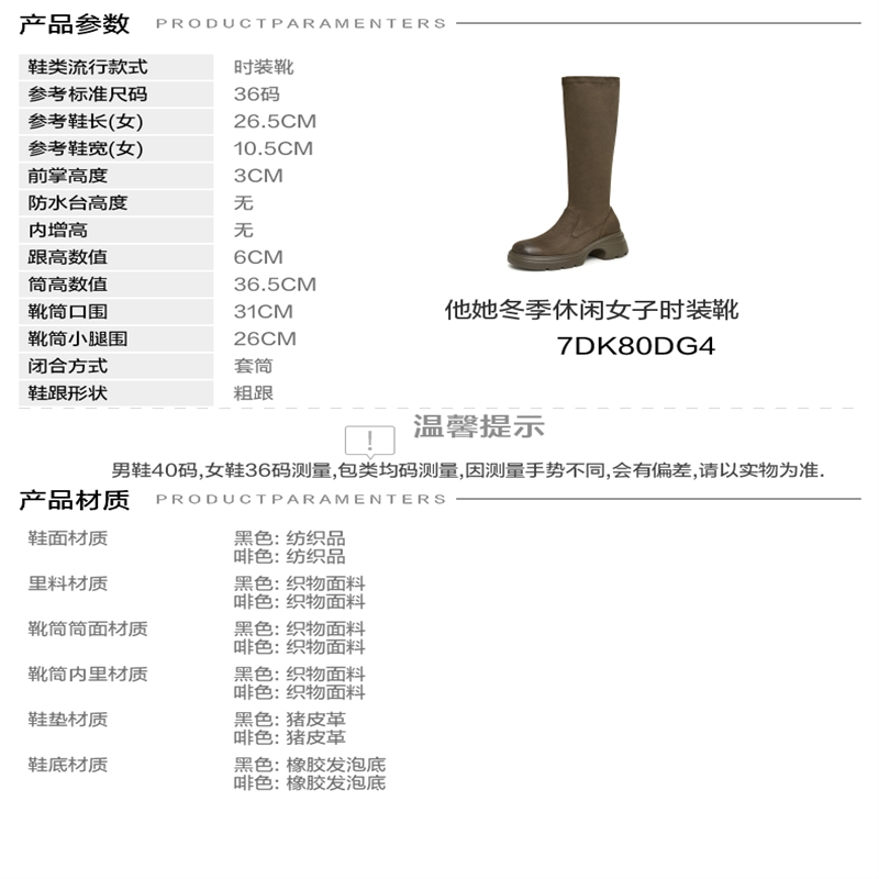 Tata他她女鞋厚底弹力长靴女靴子显瘦高筒靴2024冬季新款7DK80DG4