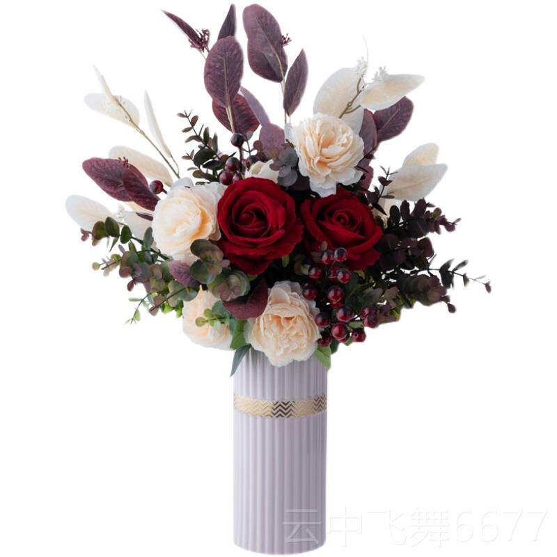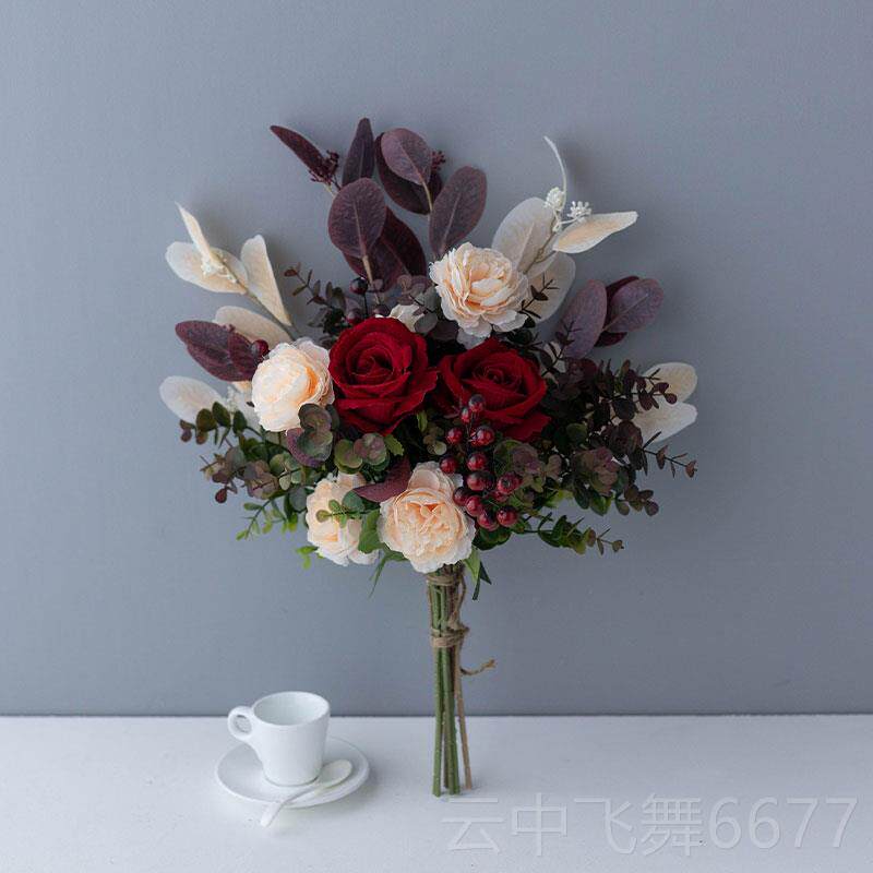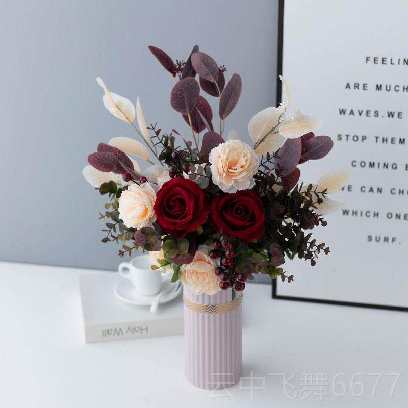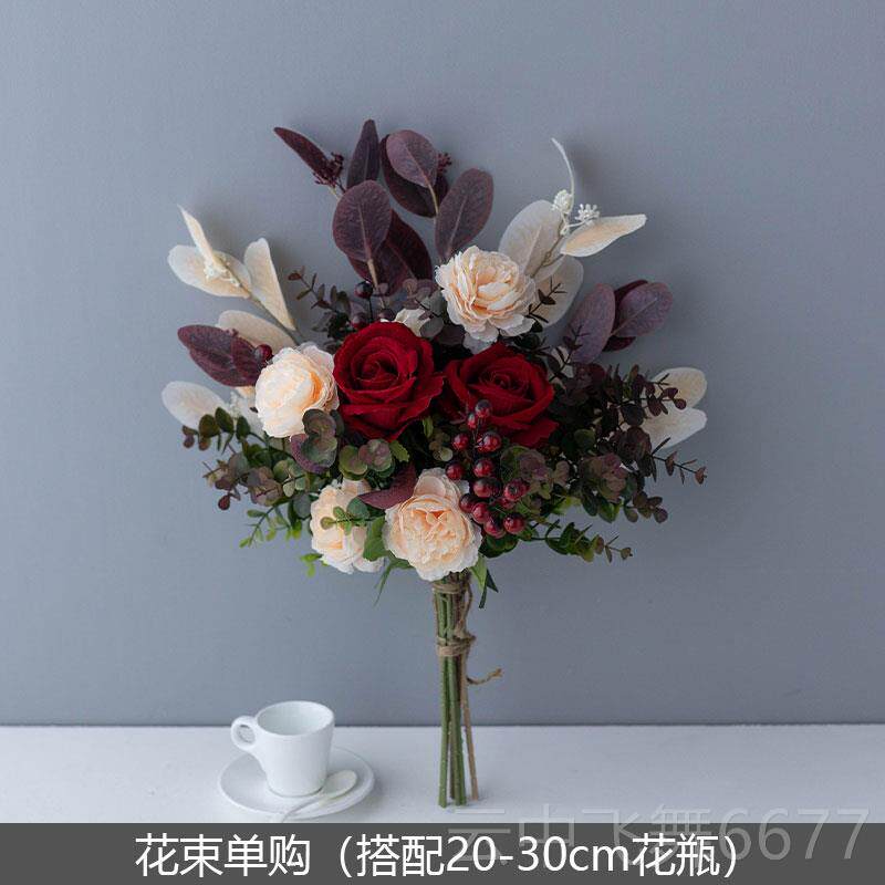 正品假花仿真绢酒红玫瑰摆放设轻奢件绢布厅书房插花花家客居装艺