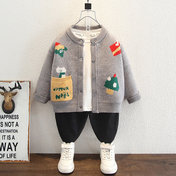 男童毛衣开衫秋冬款儿童针织衫外套中大童冬季保暖圆领毛线衫上衣