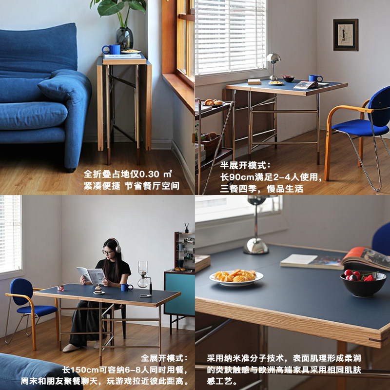 『号角屋 浮阁折叠桌』北欧中古家用小户型可伸缩餐桌长方形饭桌