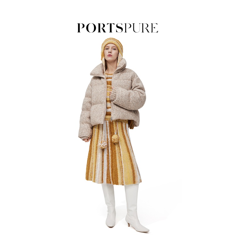 【李沁同款】宝姿PORTSPURE女装肌理感针织羽绒服RT9U201UKD011