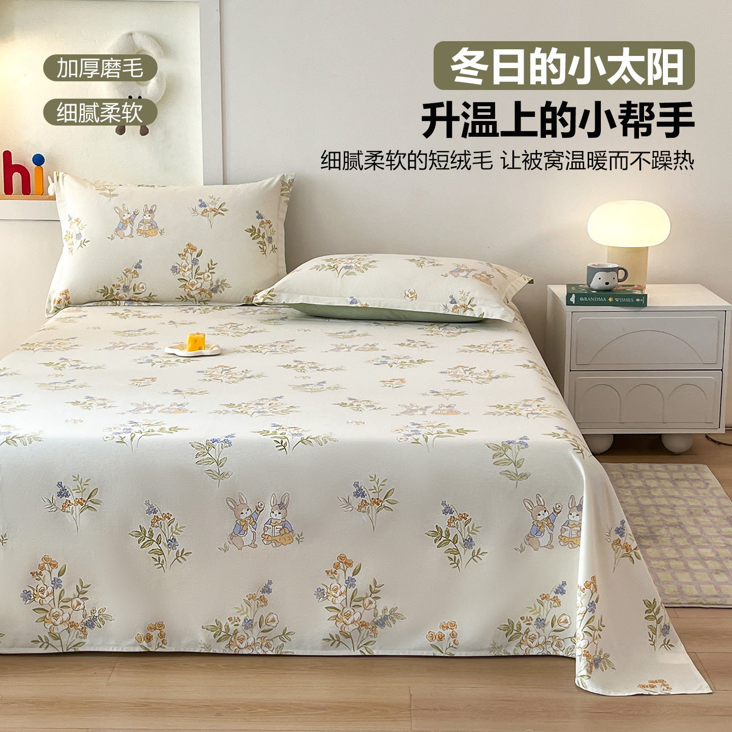 金号磨毛床单单件纯棉100全棉冬季加厚床罩单人2025新款四季通用