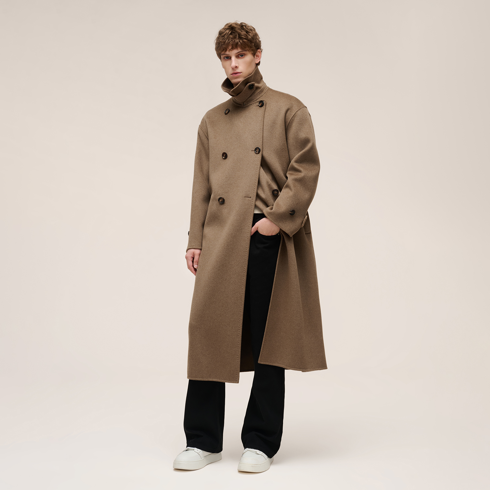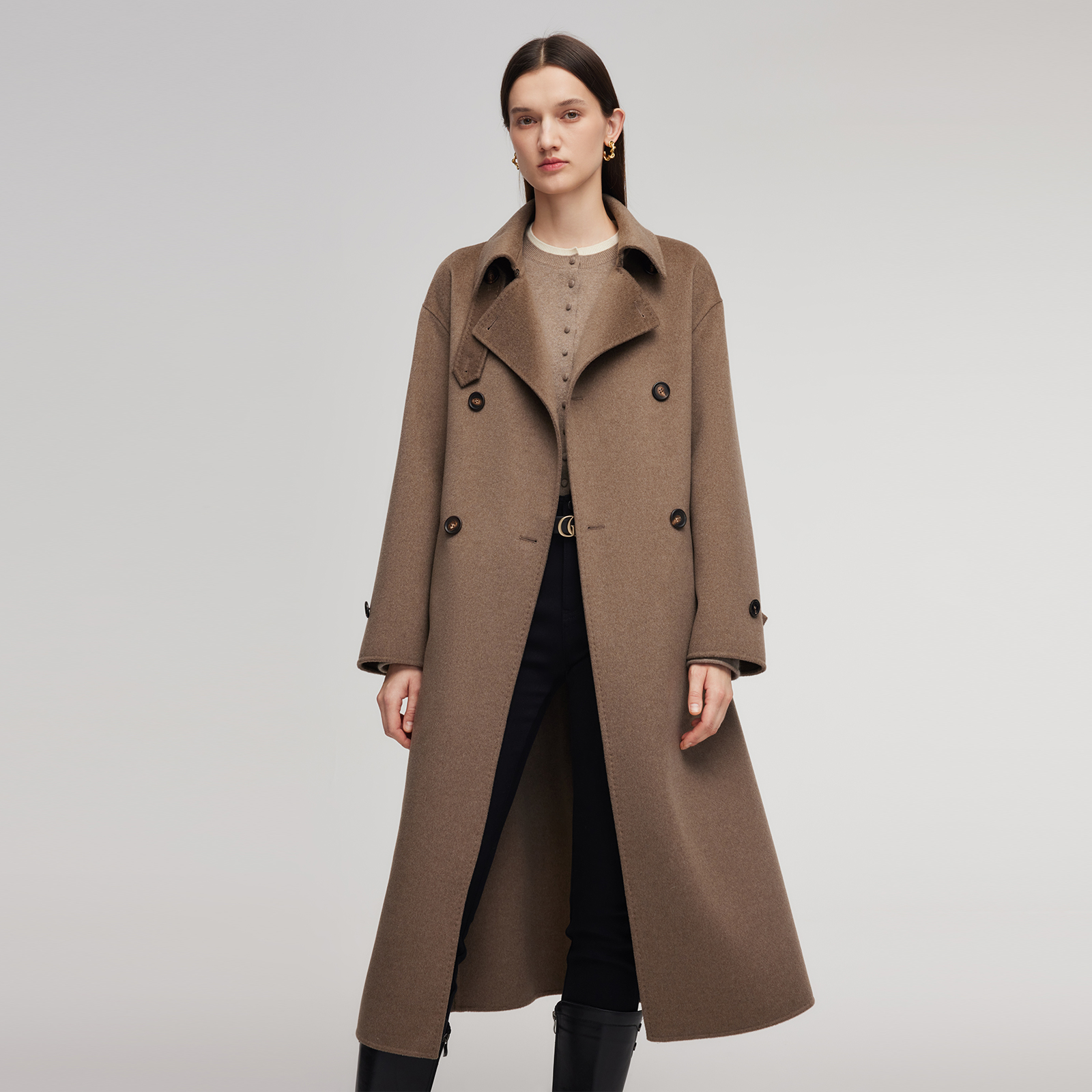 歌莉娅冬新品羊毛羊绒混纺双面呢风衣式大衣男女同款1ENL6E080