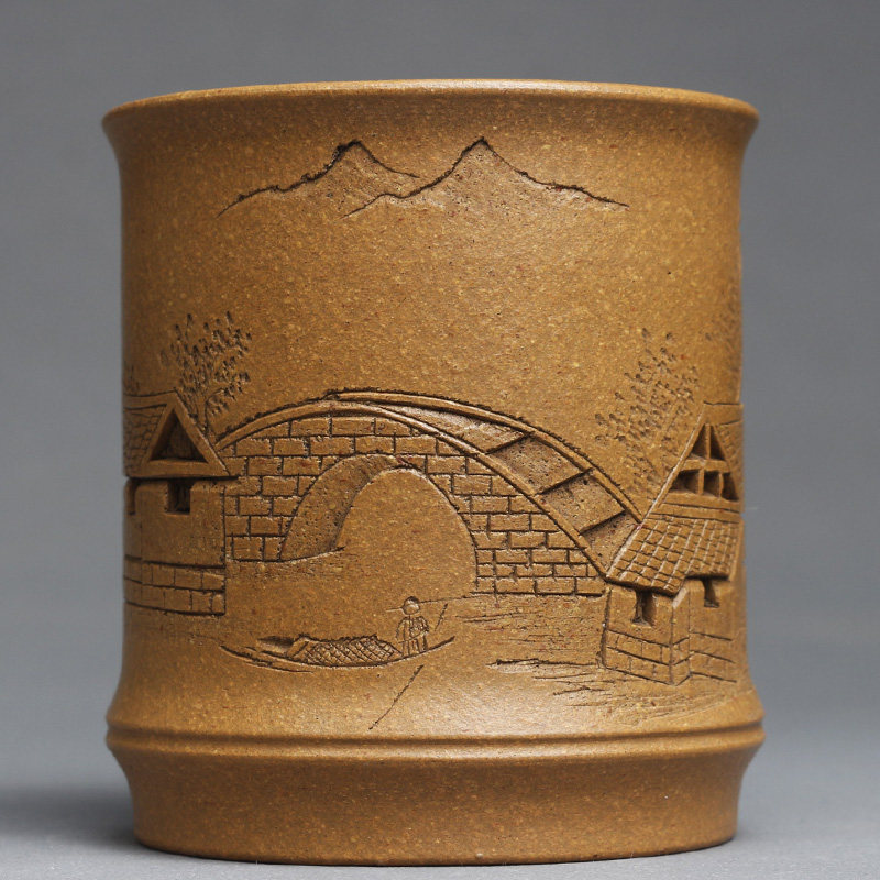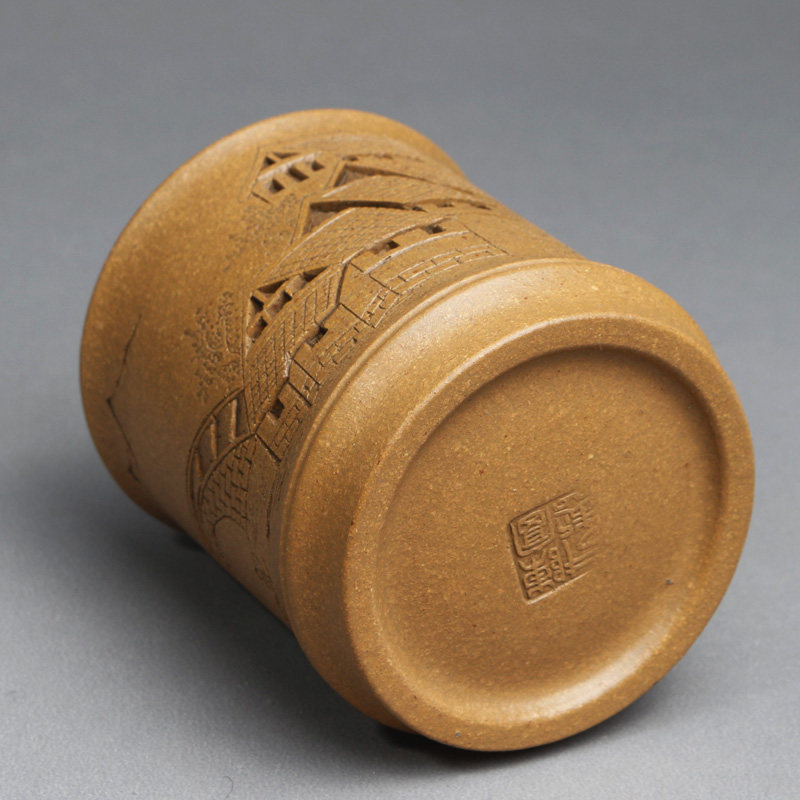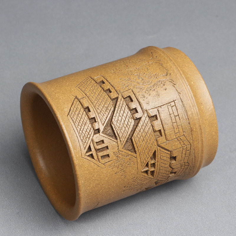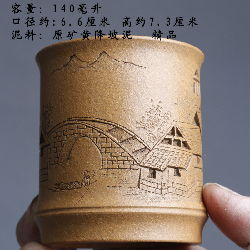 宜兴紫砂主人杯纯全手工茶杯名家刻绘忆江南个人品茗杯原矿黄降坡