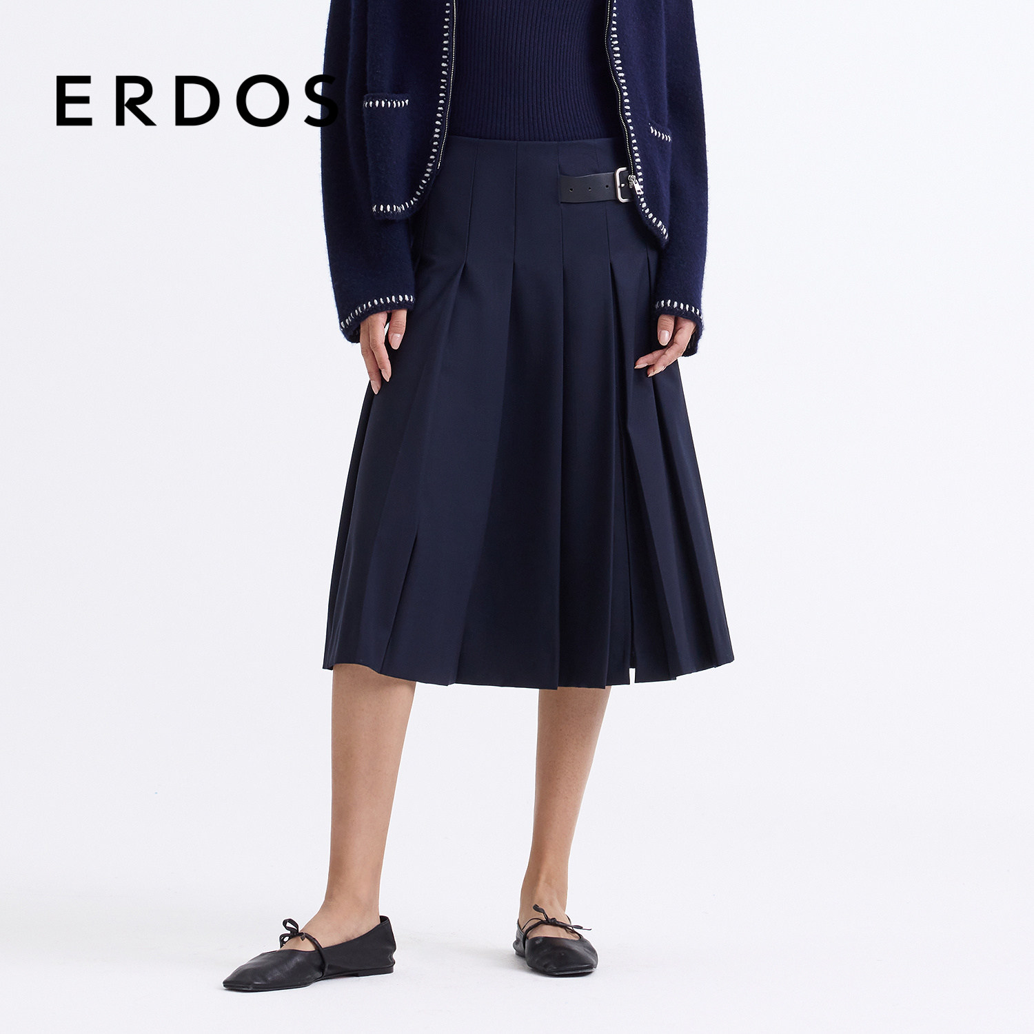 【刘雯同款】ERDOS羊毛学院风百褶裙皮带装饰A字半身裙