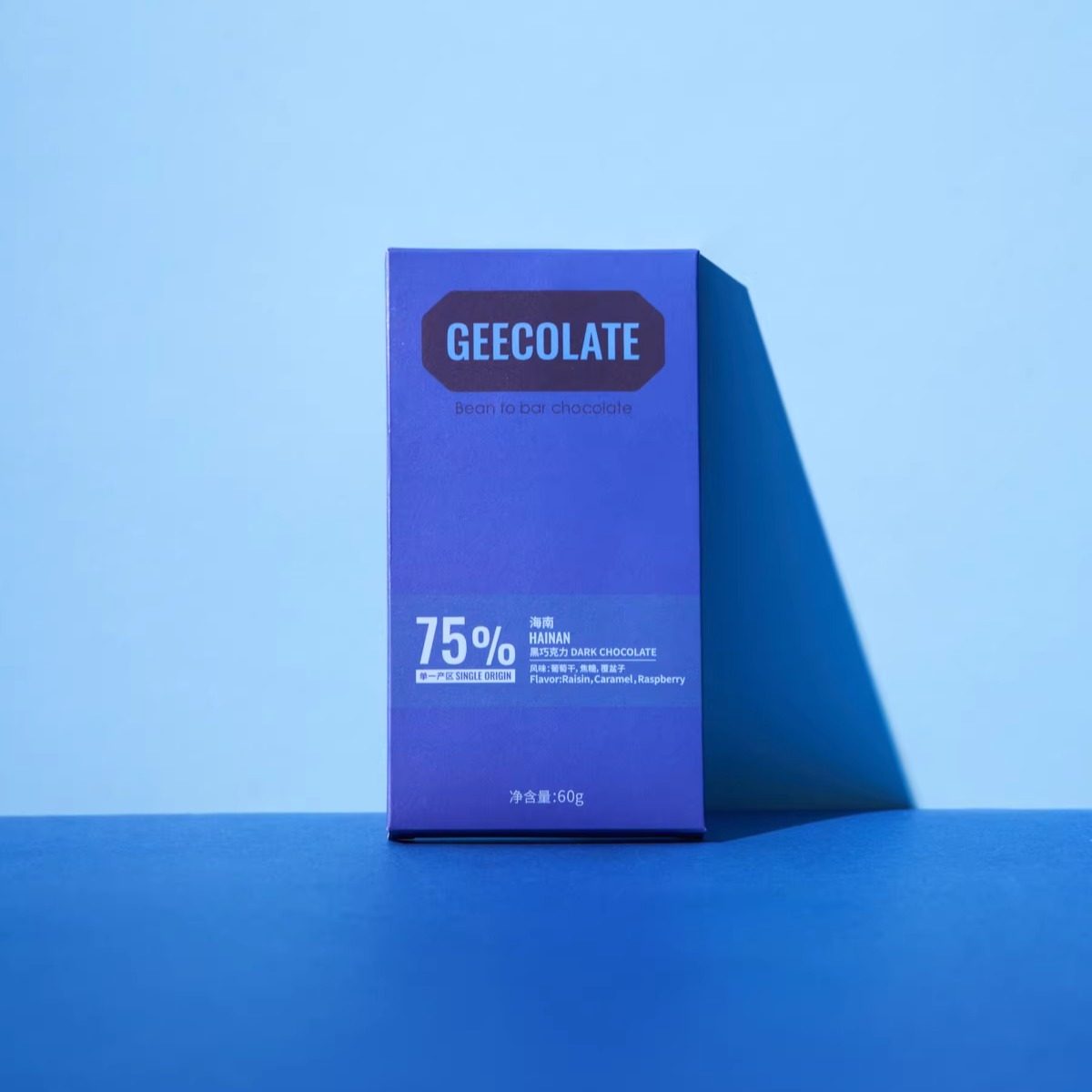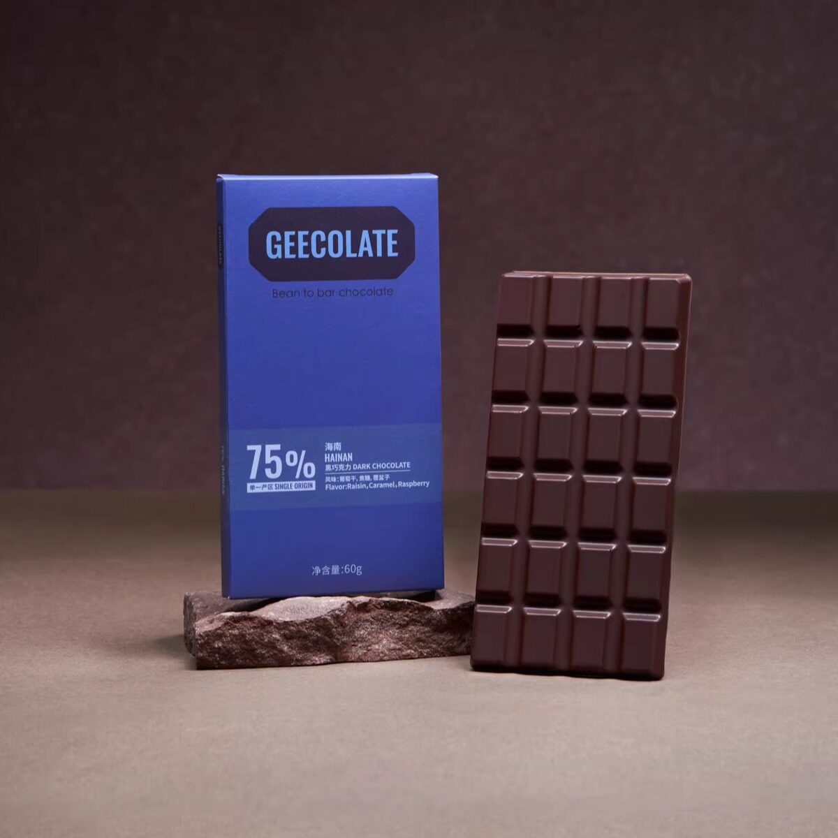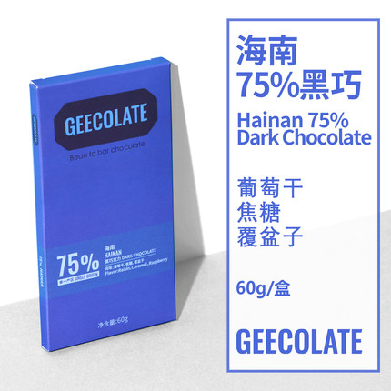 GEECOLATE精品黑巧克力75%海南焦糖葡萄干香丝滑柔和天然新鲜60g