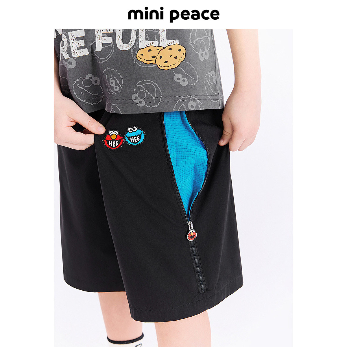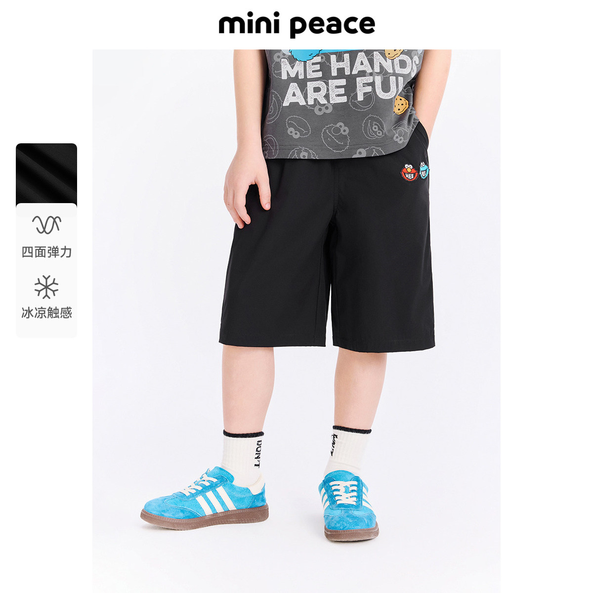 MINIPEACE×芝麻街联名男童短裤夏季凉感微弹拉链款儿童五分裤