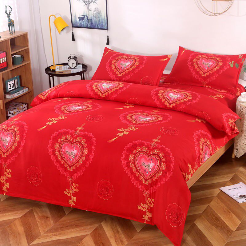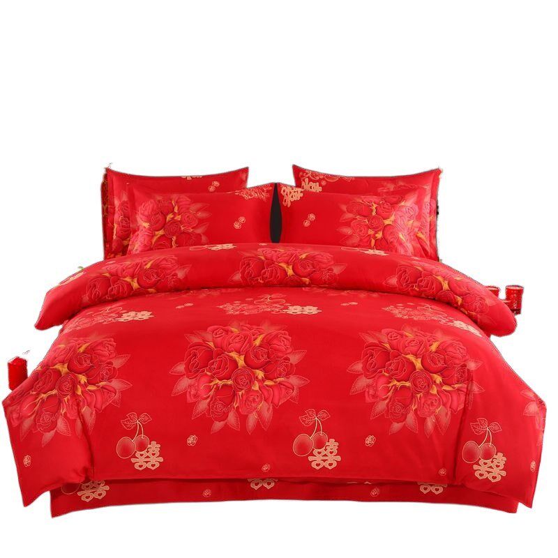 情侣加厚磨毛床单被套结婚大红色婚庆斜纹四件套床上用品套件
