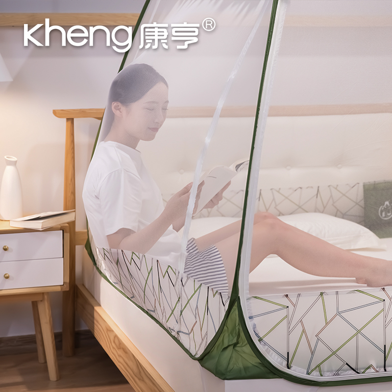 康亨新品蒙古包蚊帐免安装1.8m床1.5米家用 防摔儿童可折叠纹帐