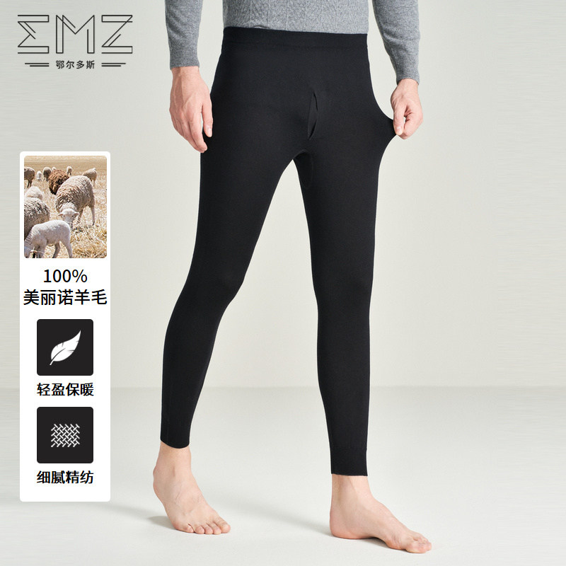 【纯羊毛】emz鄂尔多斯护冬季加厚膝羊毛裤保暖抗寒针织打底裤男