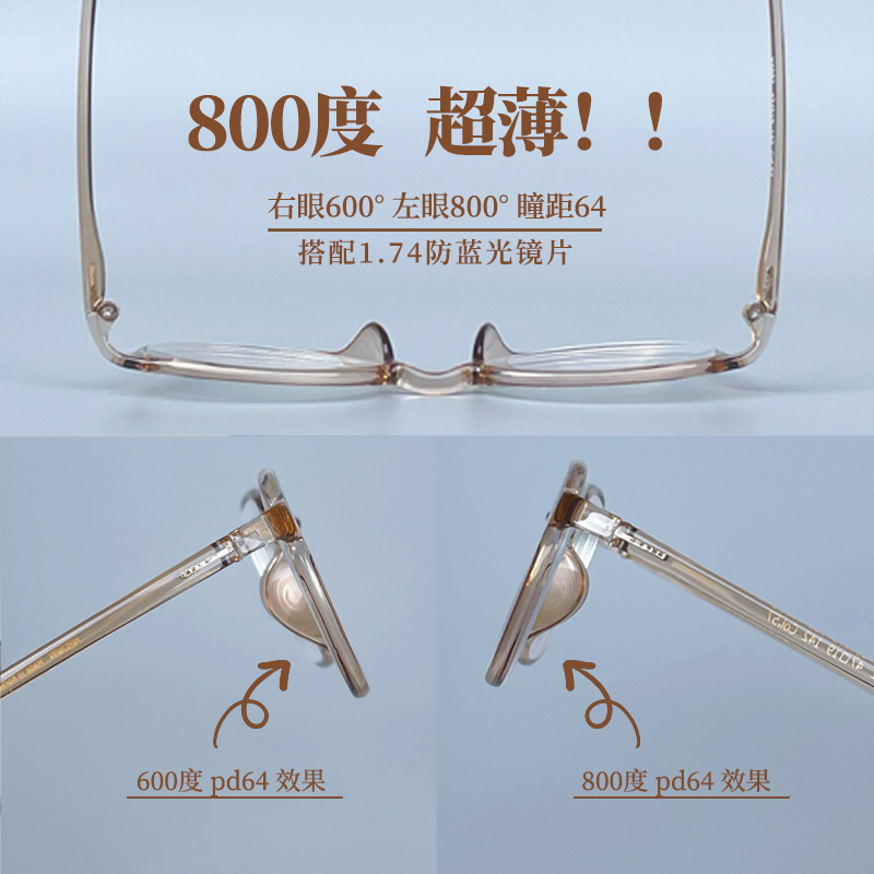 蜜柚茶色素颜眼镜框女超轻可配近视高度数学生小脸椭圆镜架防蓝光