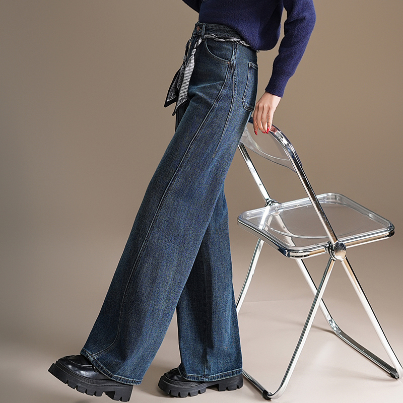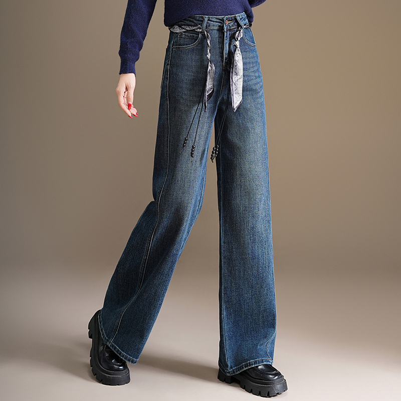 加厚窄版阔腿牛仔裤女秋冬2025年新款宽松长裤高腰显瘦遮胯直筒裤
