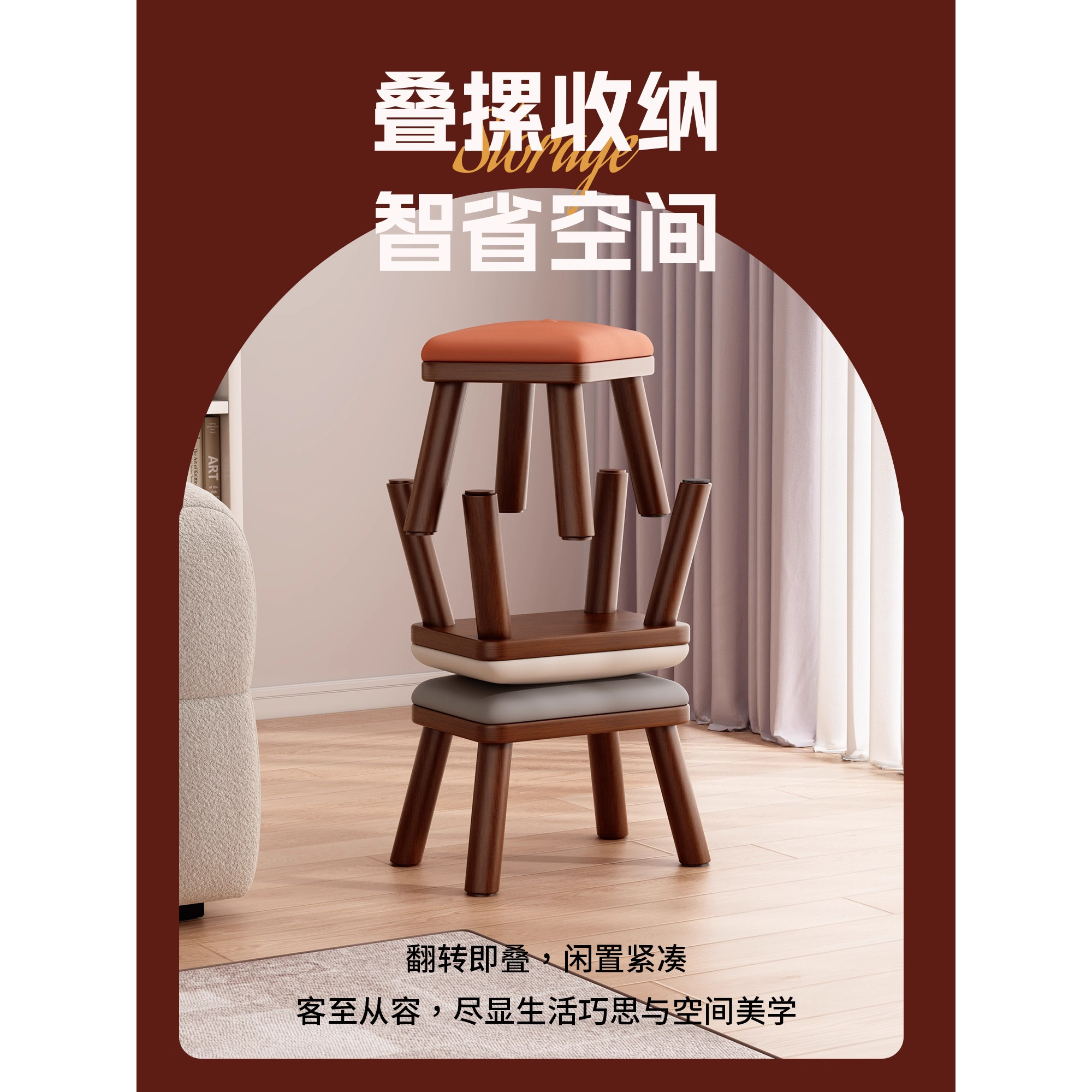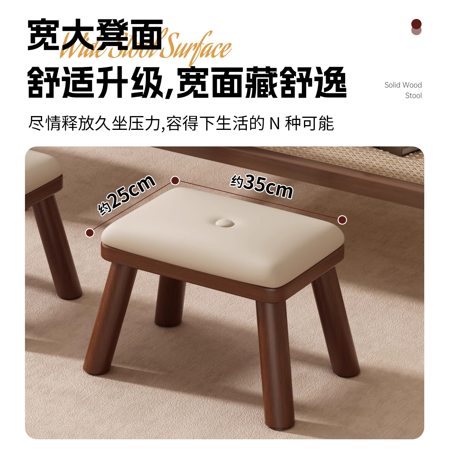 居烁小凳子家用实木软坐垫矮凳