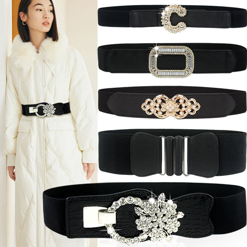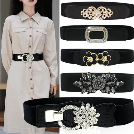 高级感收腰带百搭松紧弹力气质黑色束腰封配女毛衣羽绒服连衣裙子