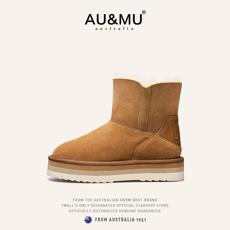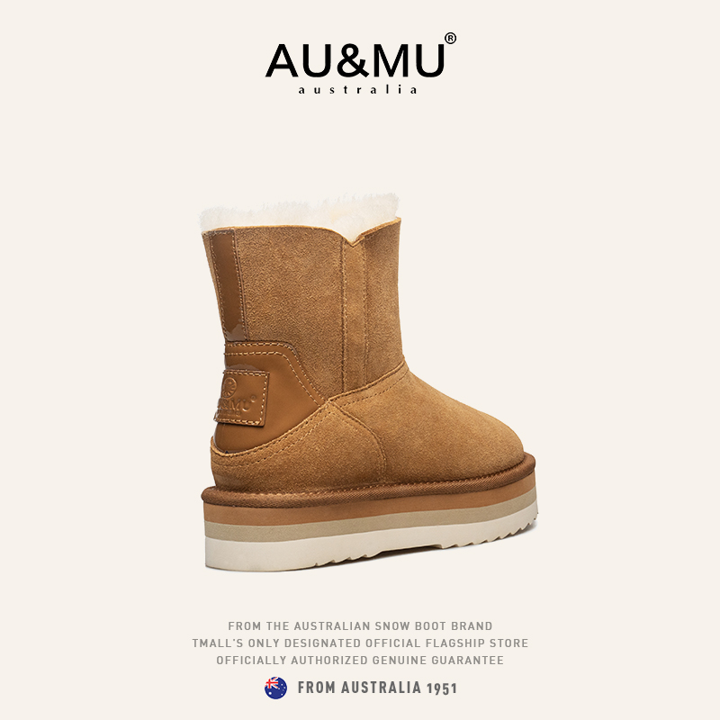 AUMU防水防滑厚底短筒雪地靴