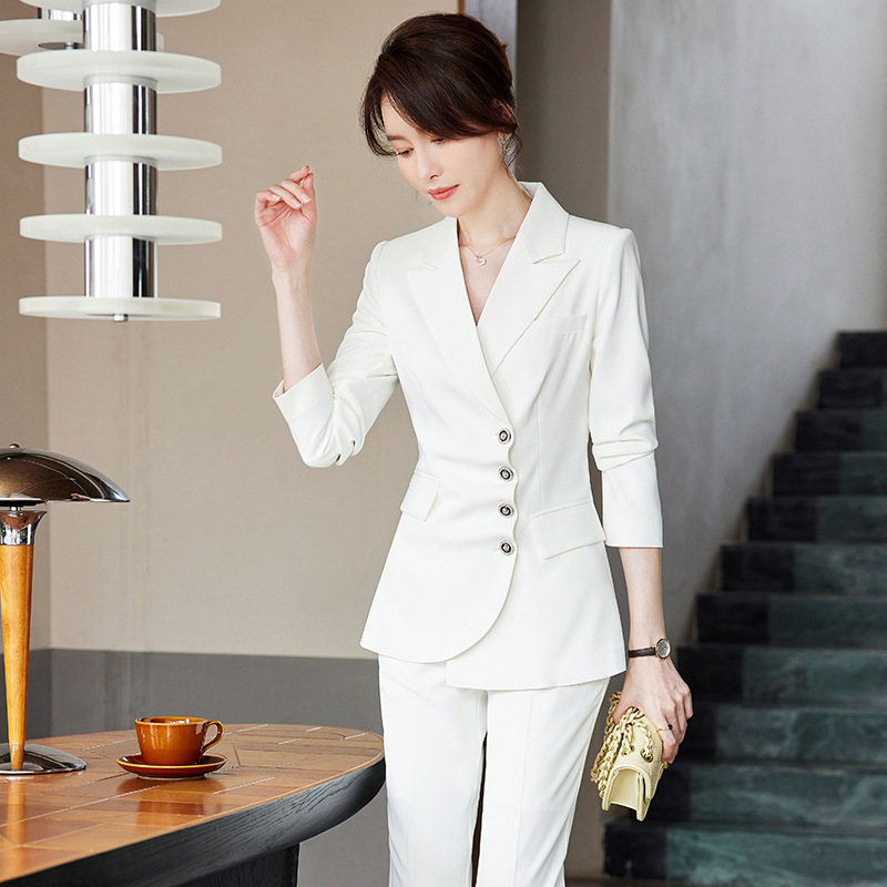 春秋职业装白色西装套装