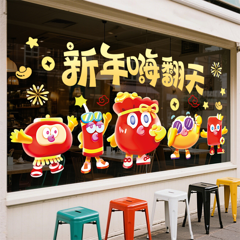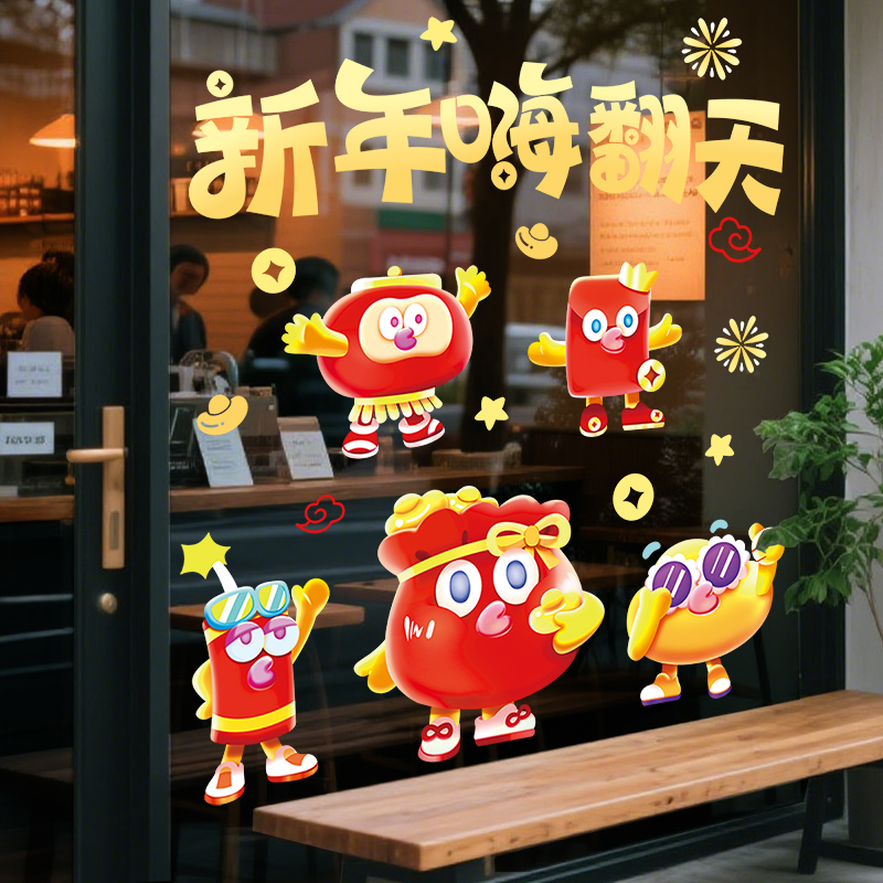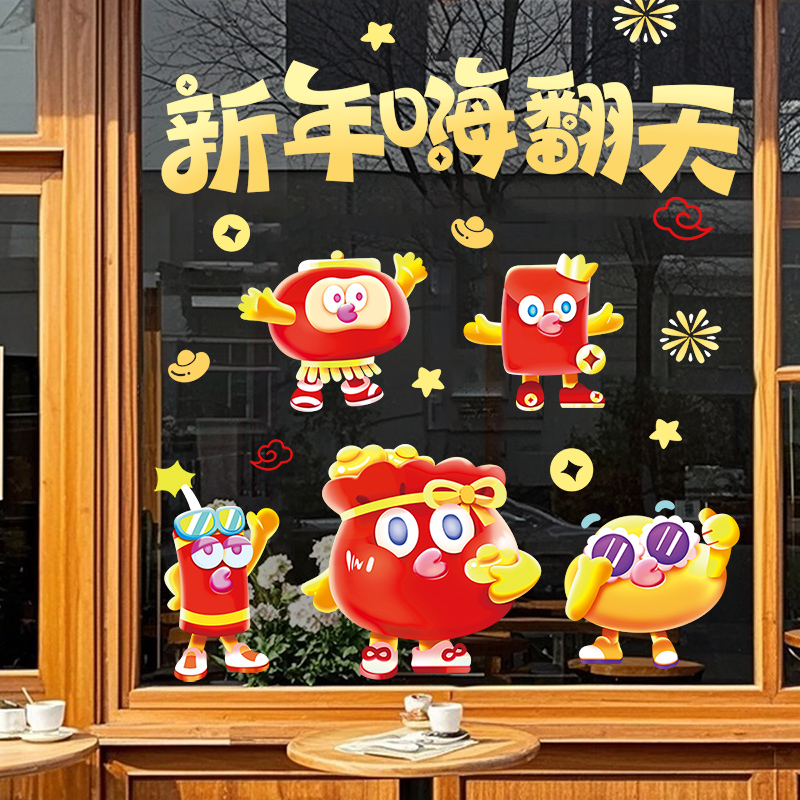 2026马年新年春节装饰品过年氛围布置商场公司窗花静电玻璃门贴纸