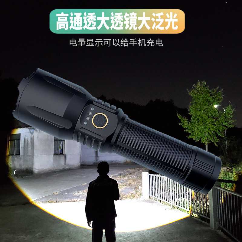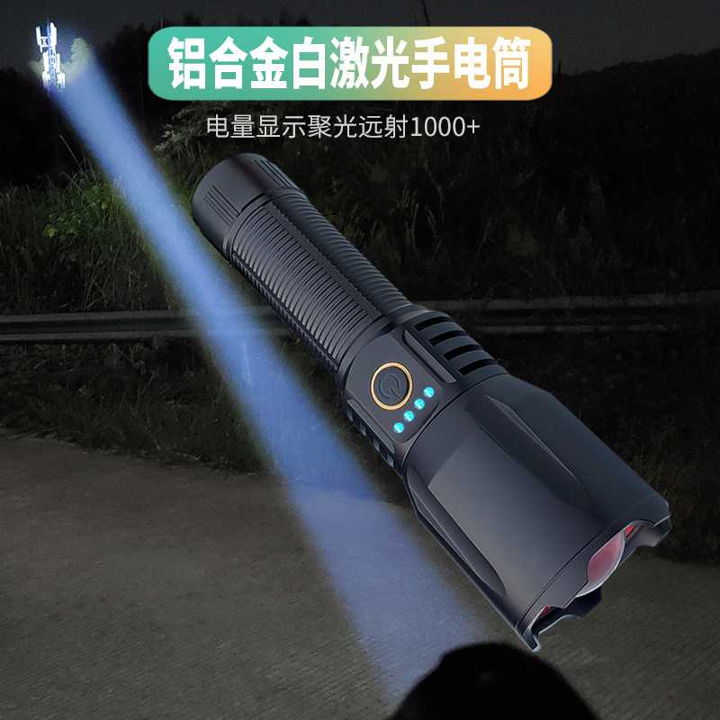 亚马逊新款强光手电筒白激光户外铝合金可充电聚焦光柱远射大泛光