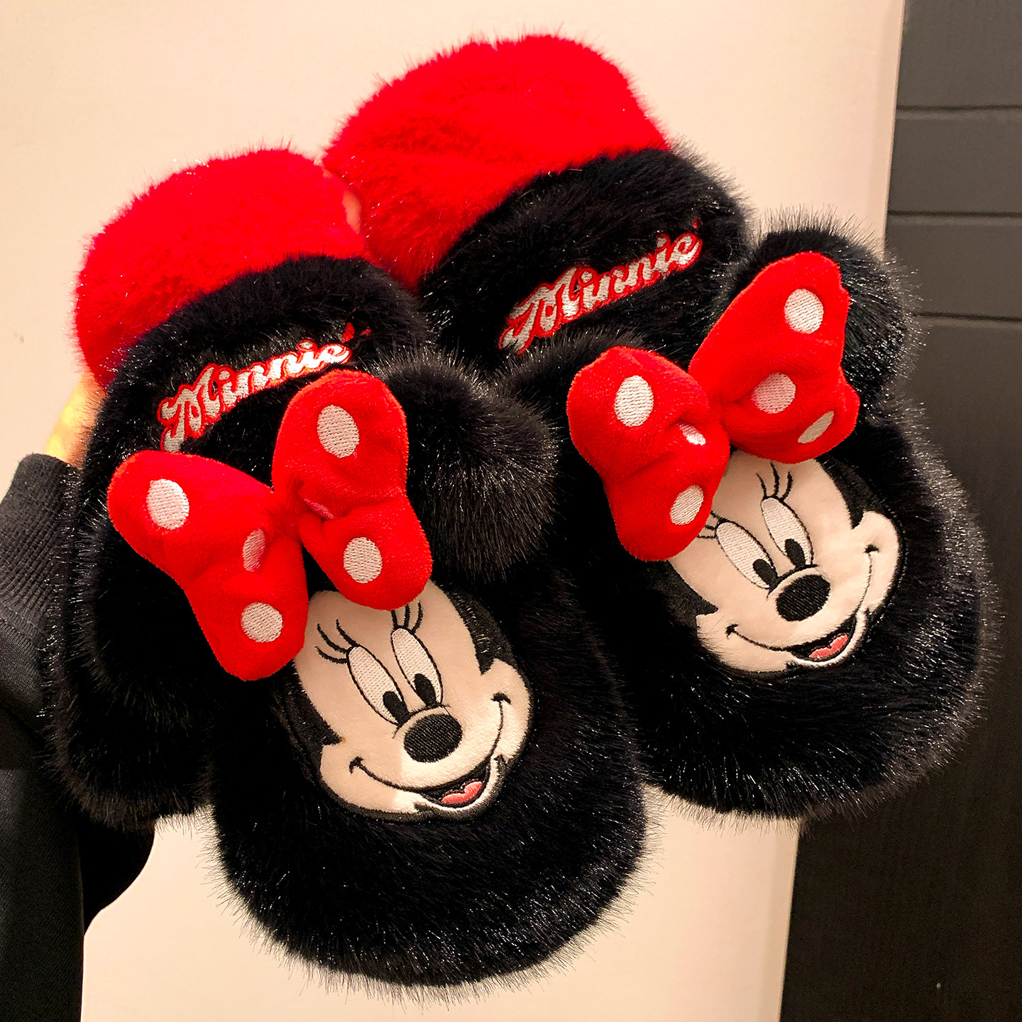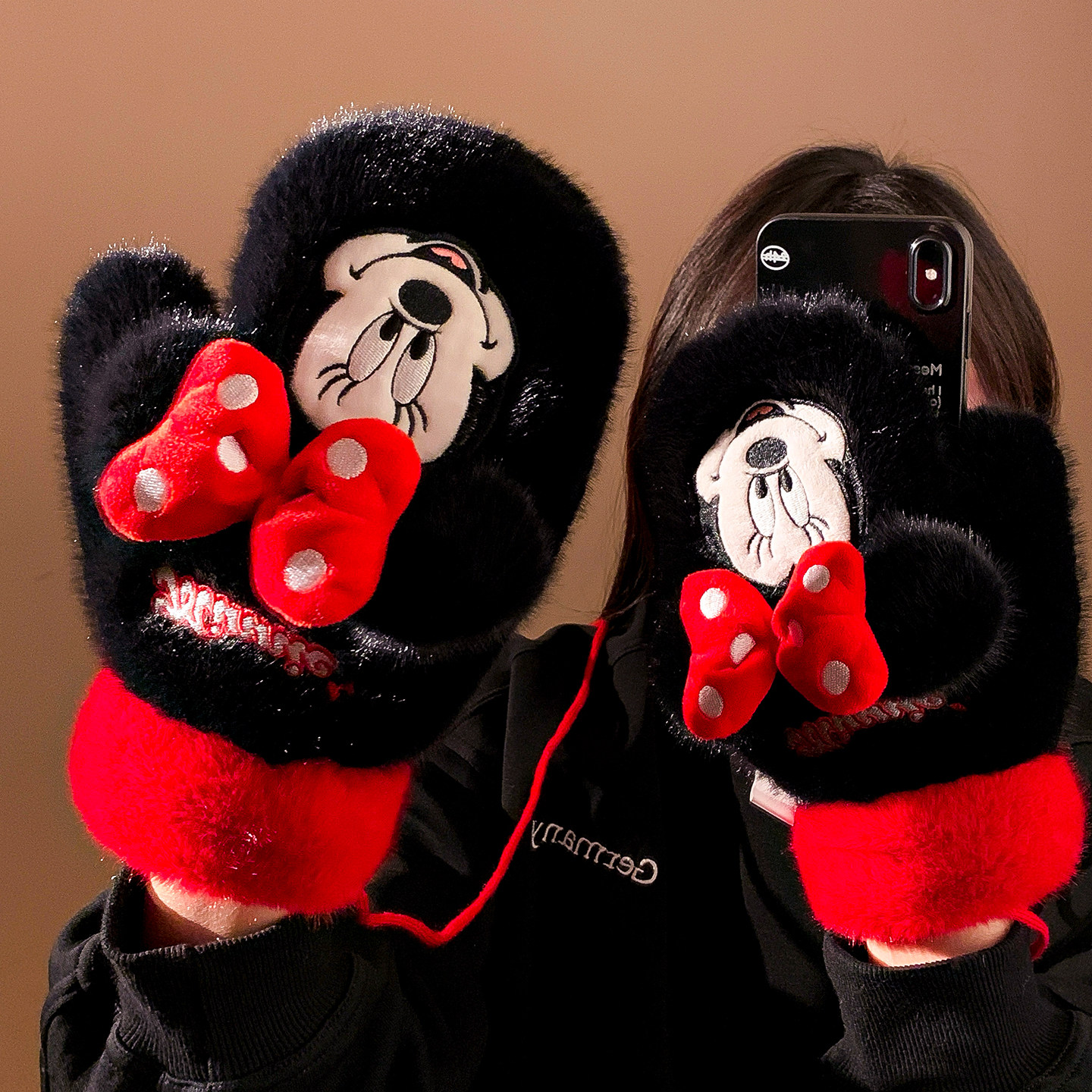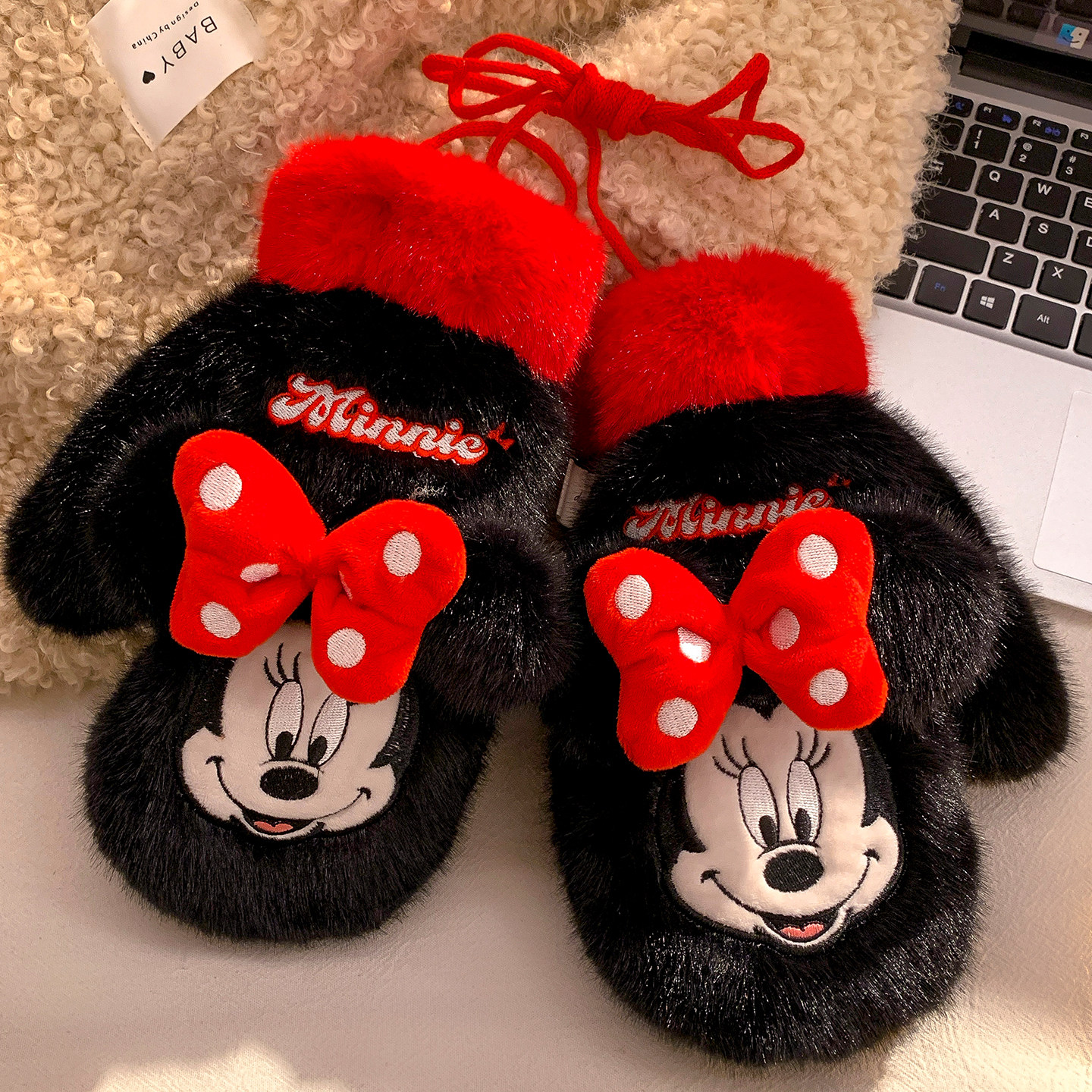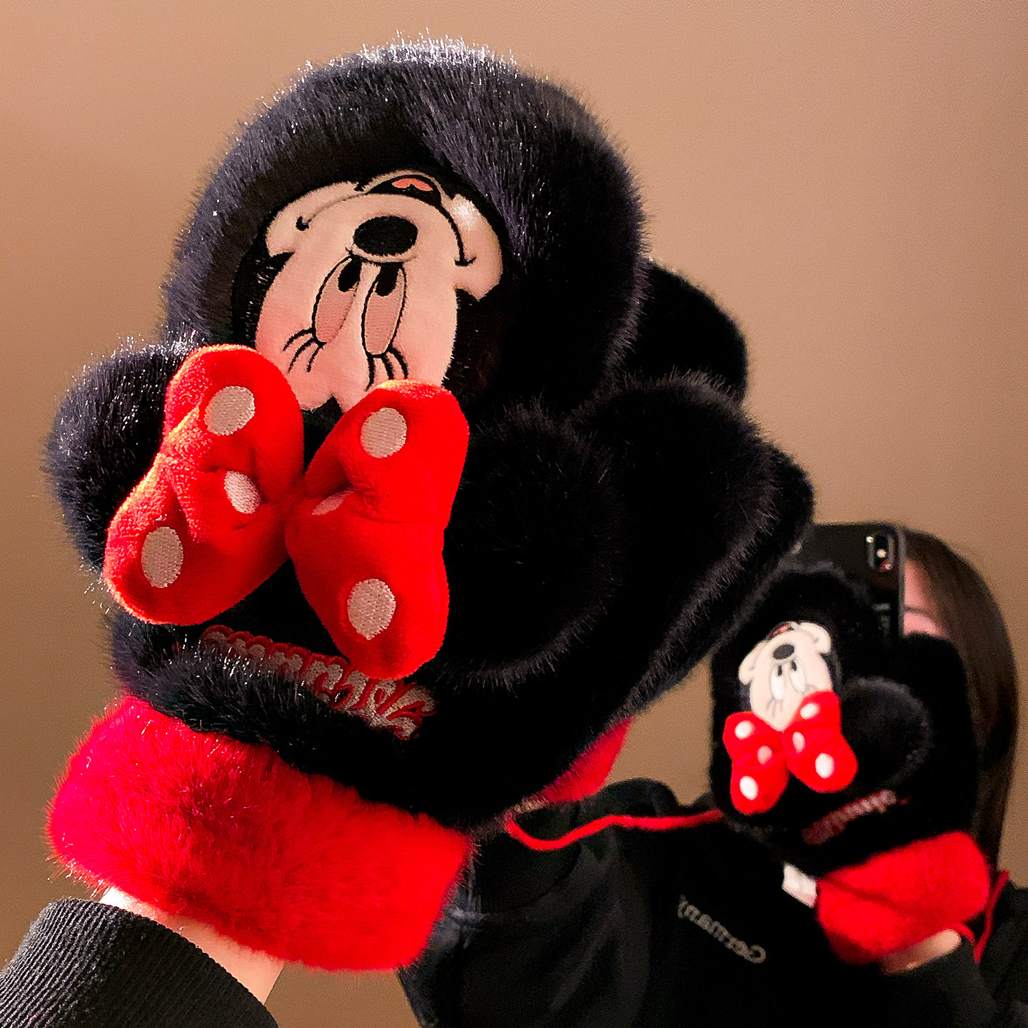 迪士尼正版米妮全包毛绒手套女冬季加绒加厚保暖防寒可爱学生骑行