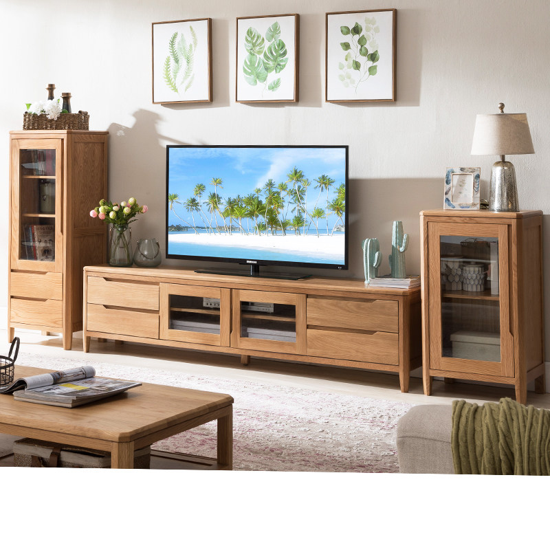 优木家具纯实木电视柜1.8米电视柜2米北美橡木两门电视柜北欧简约