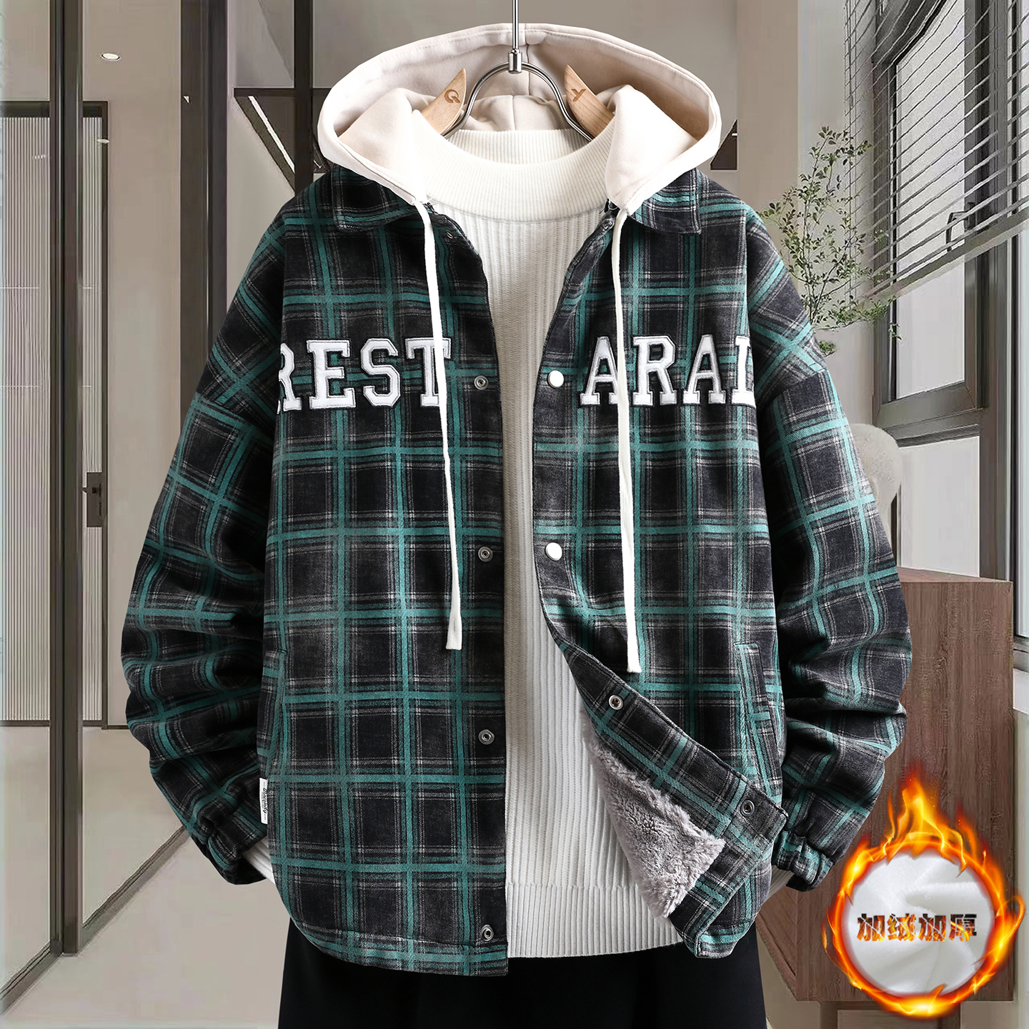 冬季青少年加绒加厚牛仔外套12男孩15岁初中学生14潮流棉衣派克服