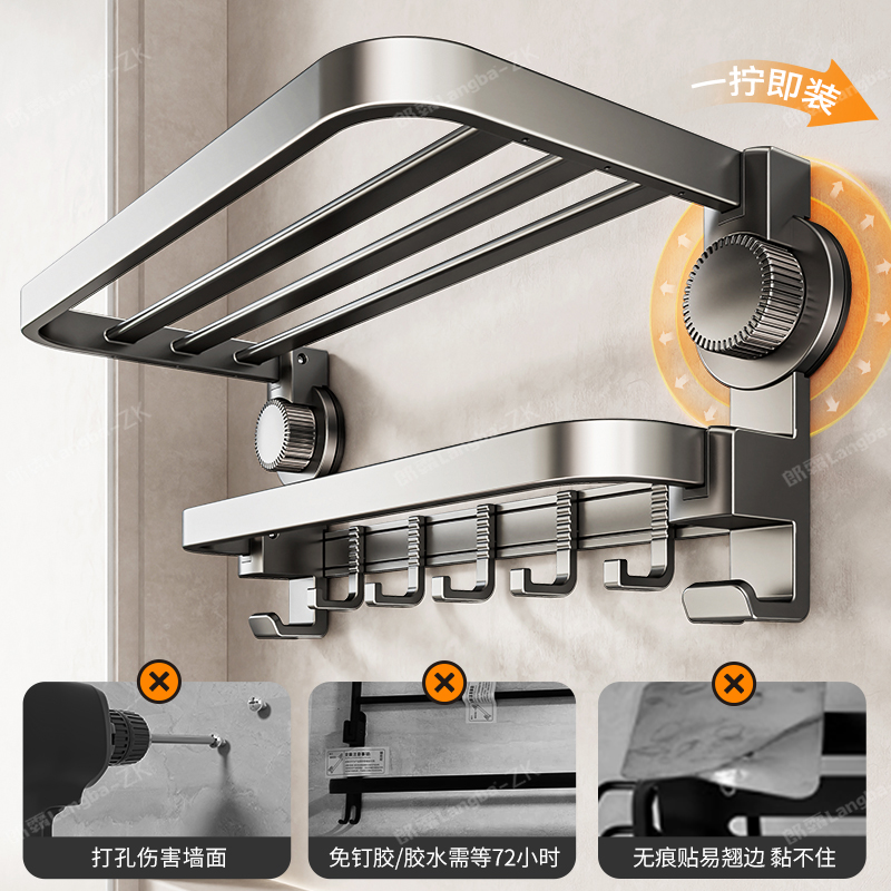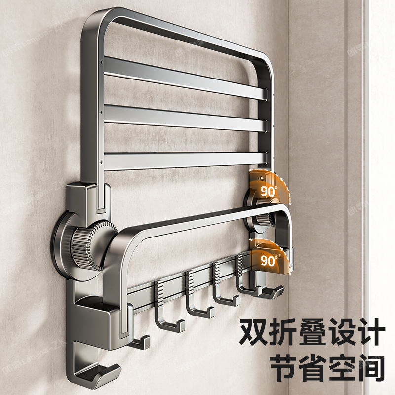 浴室吸盘浴巾架卫生间毛巾置物架一体太空铝卫浴五件套毛巾杆挂杆