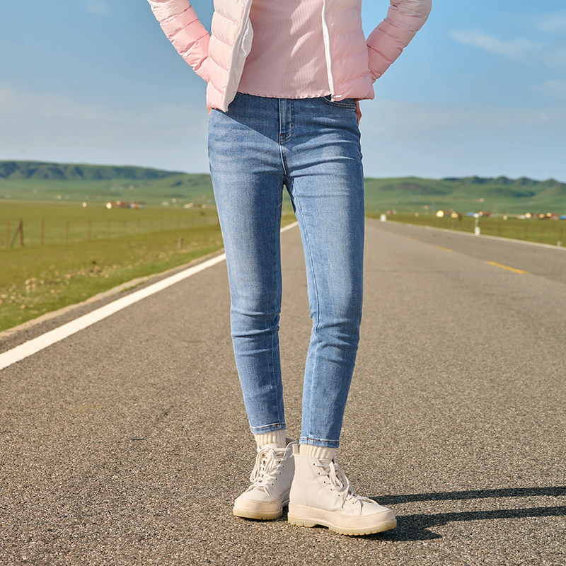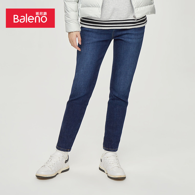 班尼路春夏新款女装时尚休闲潮流特色撞钉装饰口袋修身牛仔长裤
