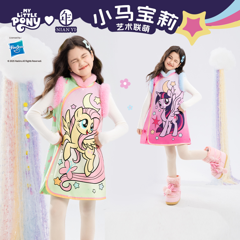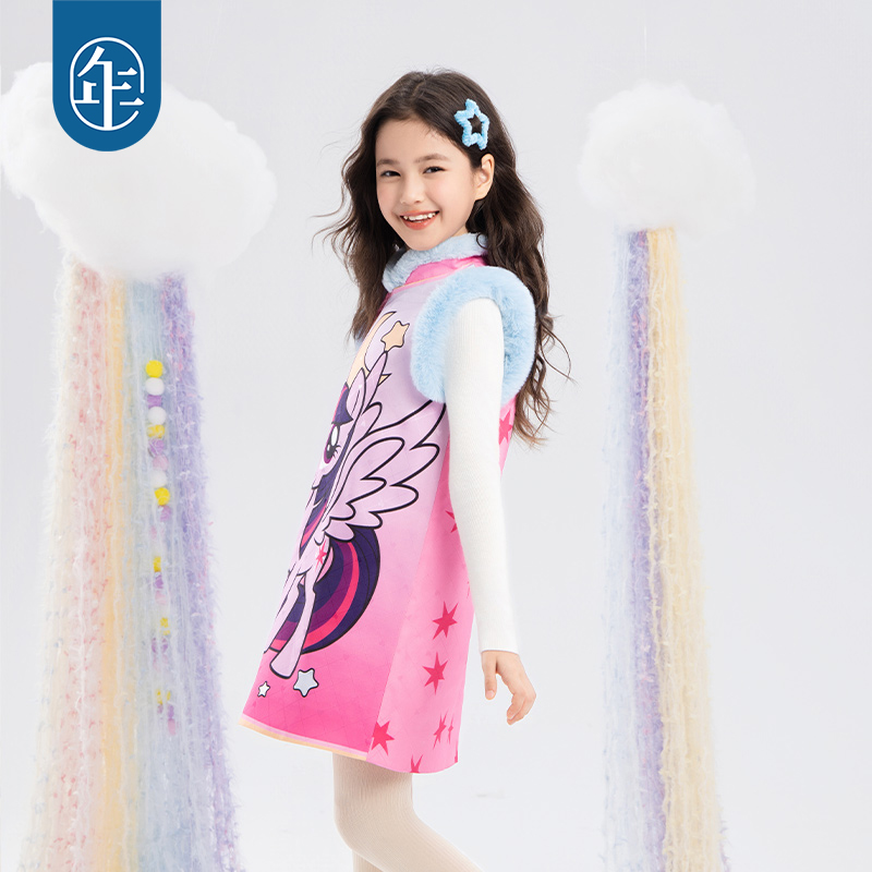 小马宝莉联名年衣童装旗袍秋冬新款女童旗袍裙卡通公主连衣裙礼服