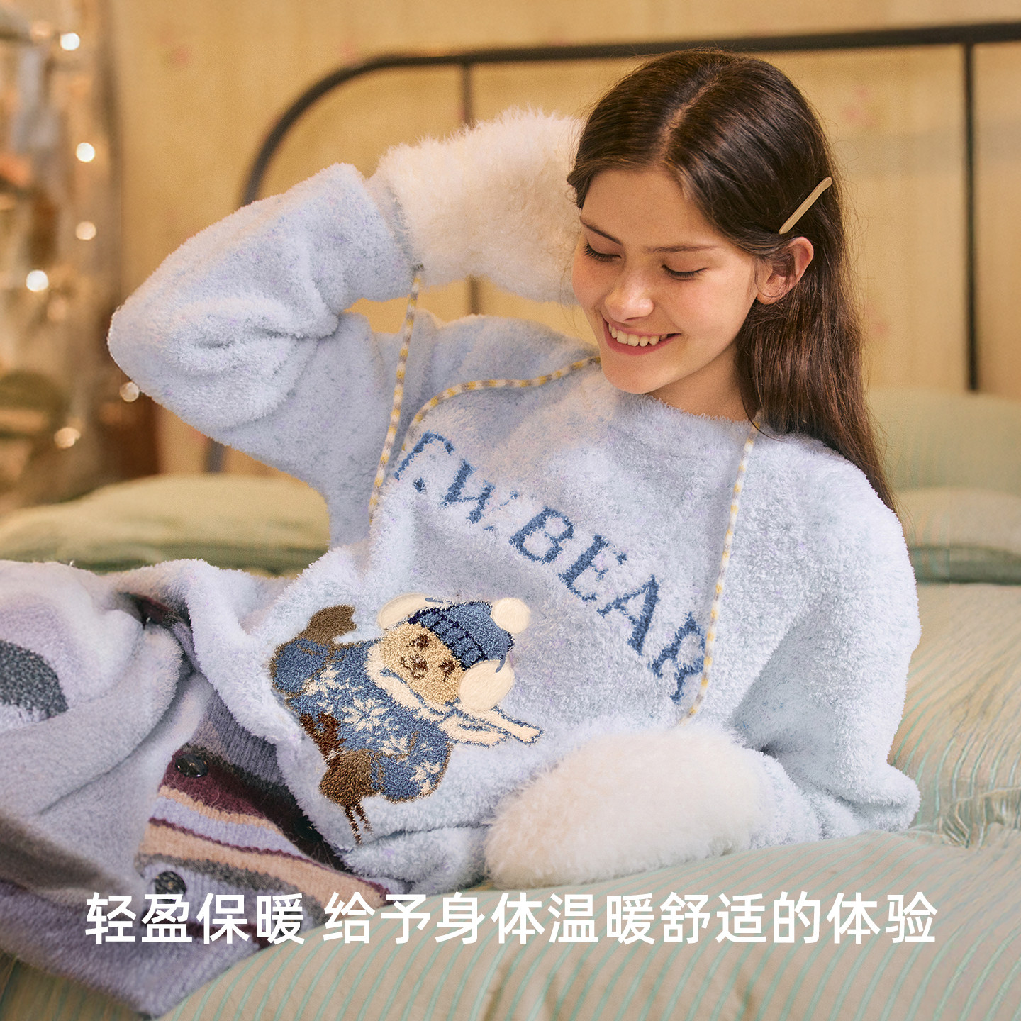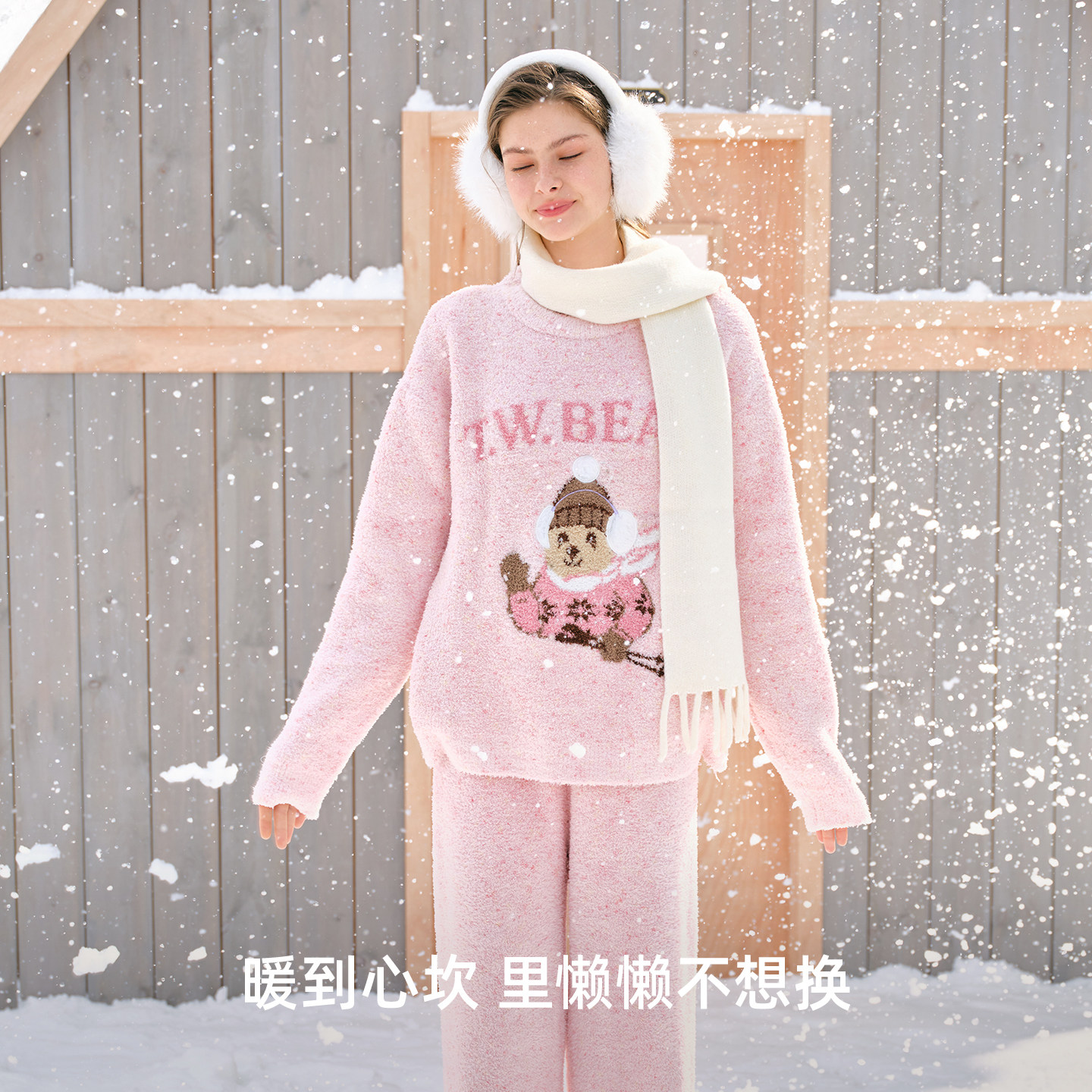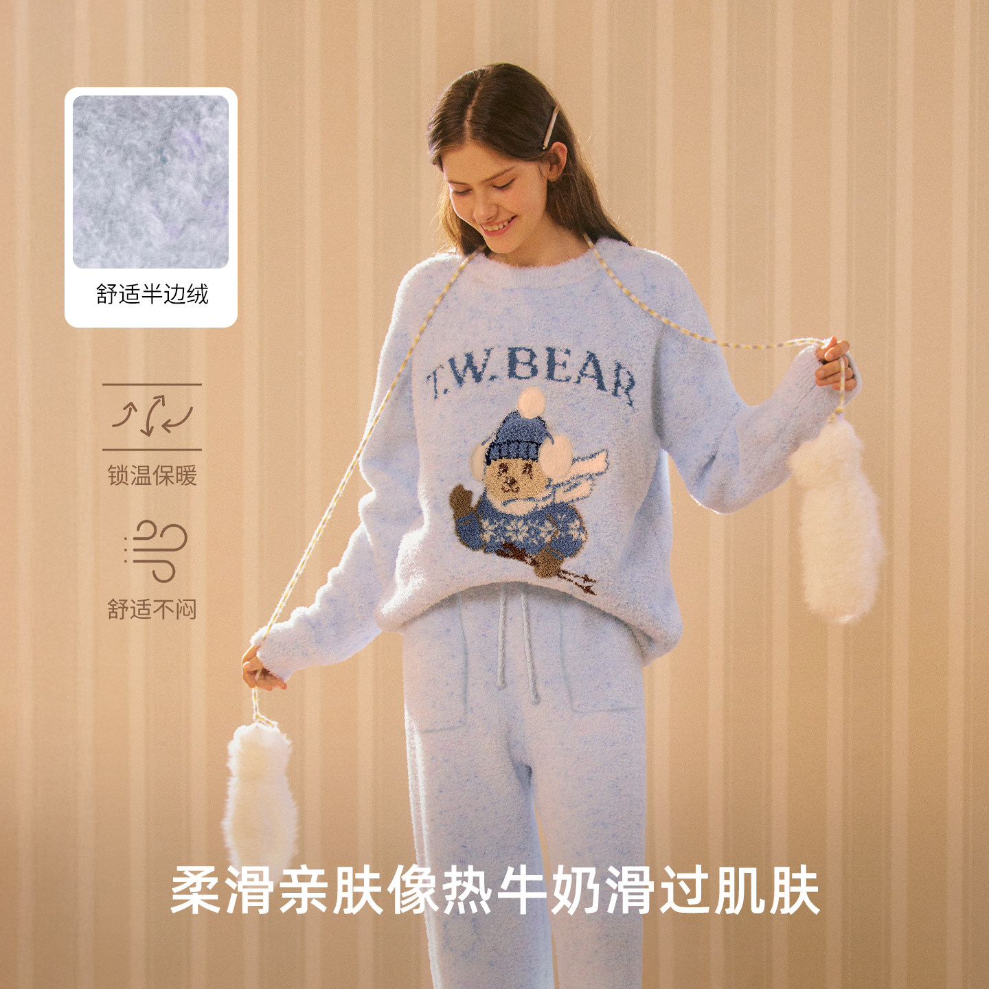 TeenieWeenie小熊女士半边绒睡衣2026新款秋冬加厚保暖家居服套装